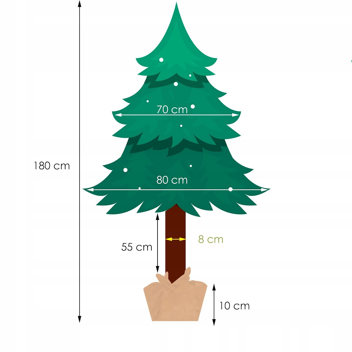 Ялинка на стовбурі сосни Діамант 180см Підставка для шишок Джутовий мішок