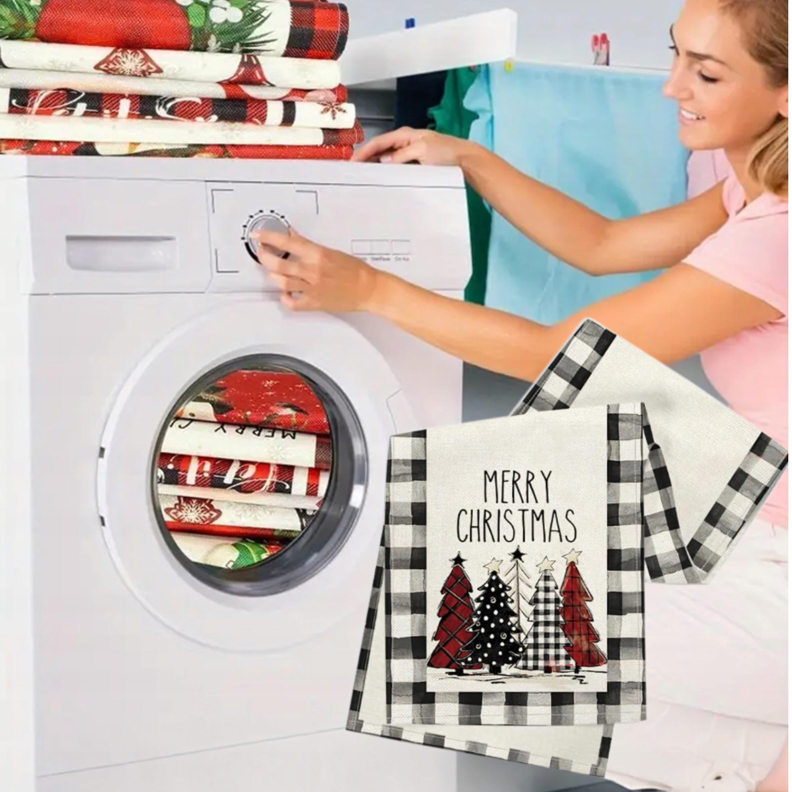 ✔️ Цвет: Черно-белый клетчатый узор с разноцветными елочками и надписью «Merry Christmas»