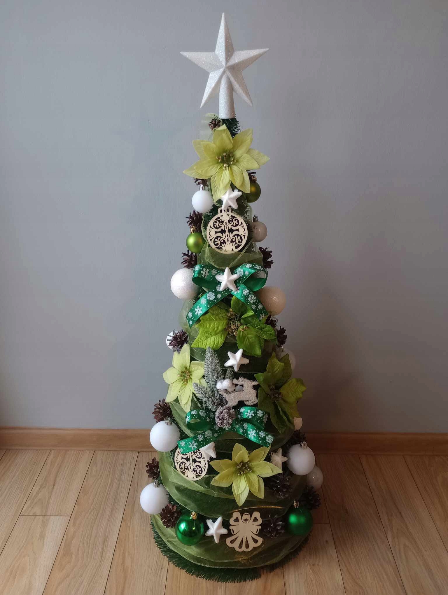 Декорации прочно приклеены горячим клеем. ЕЛКА ГОТОВА!!!!