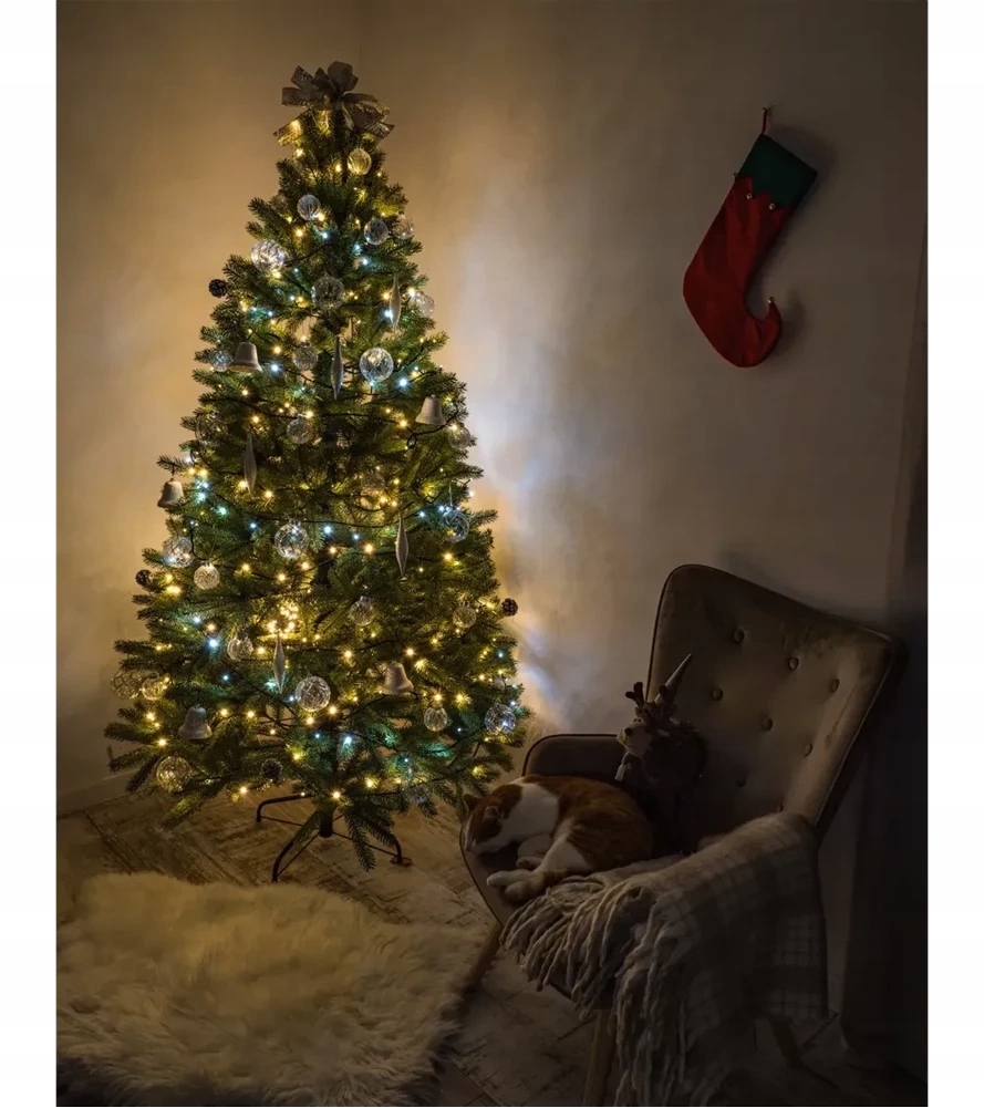 Естественная красота, которая восхищает. Плотные ветки создают иллюзию живого дерева, которое даже без дополнительных украшений выглядит чрезвычайно нарядно. Целых 1060 веток гарантируют полноценную и пышную отделку.