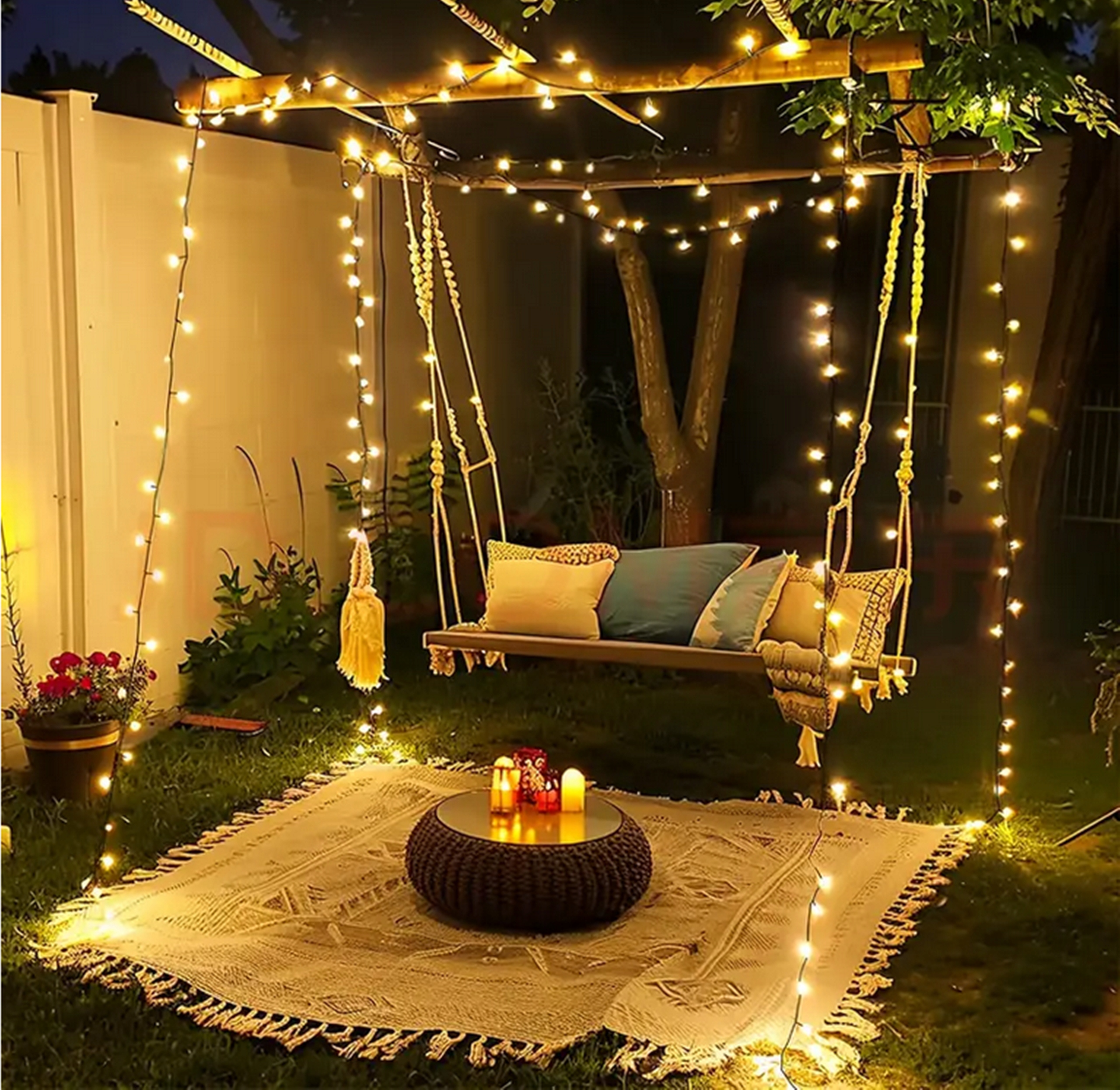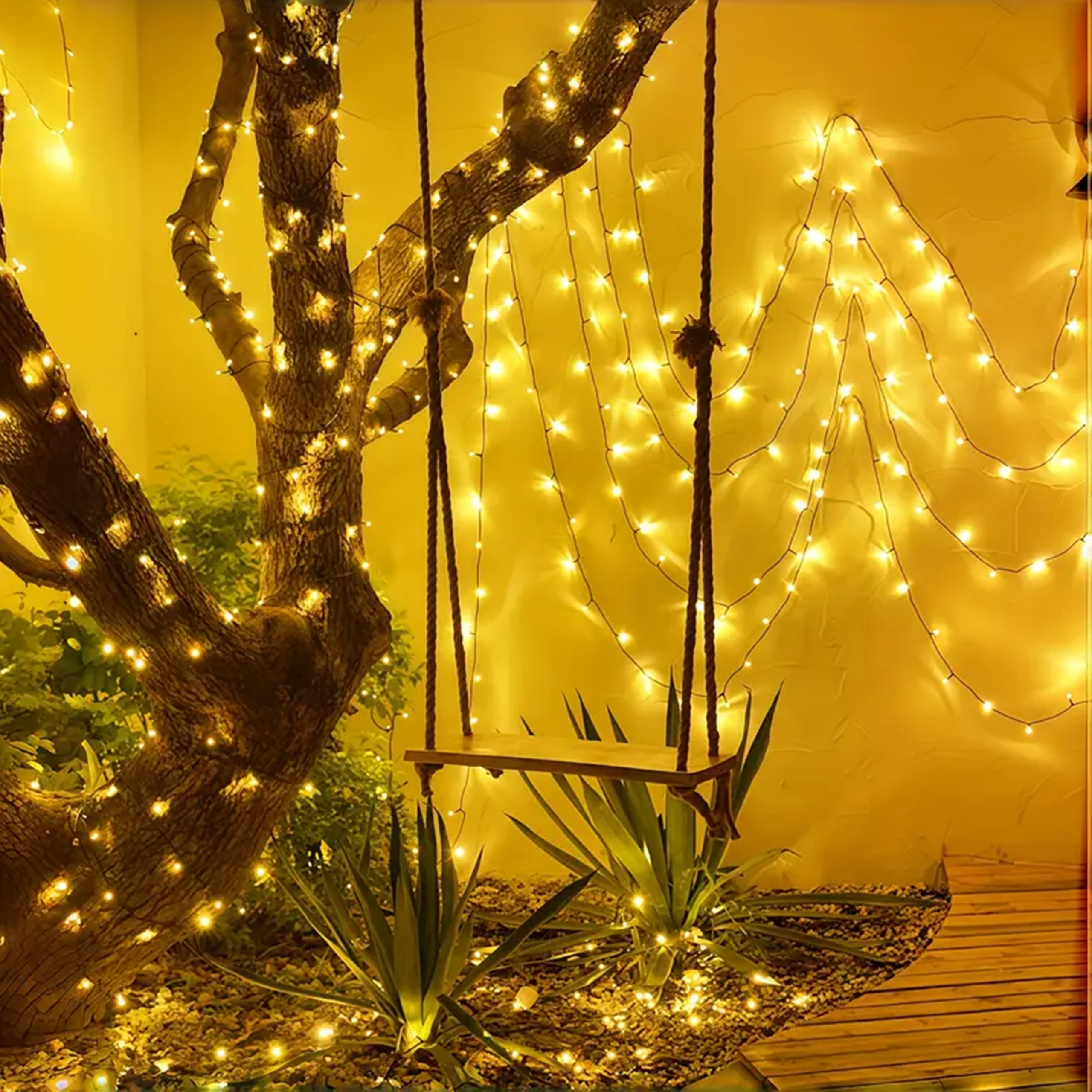 РОЖДЕСТВЕНСКИЕ СВЕТИЛЬНИКИ 100 СВЕТОДИОДНЫХ ТЕПЛОГО БЕЛОГО РОЖДЕСТВЕНСКОГО СВЕТИЛЬНИКА В ИНТЕРЬЕРЕ НА УЛИЦЕ