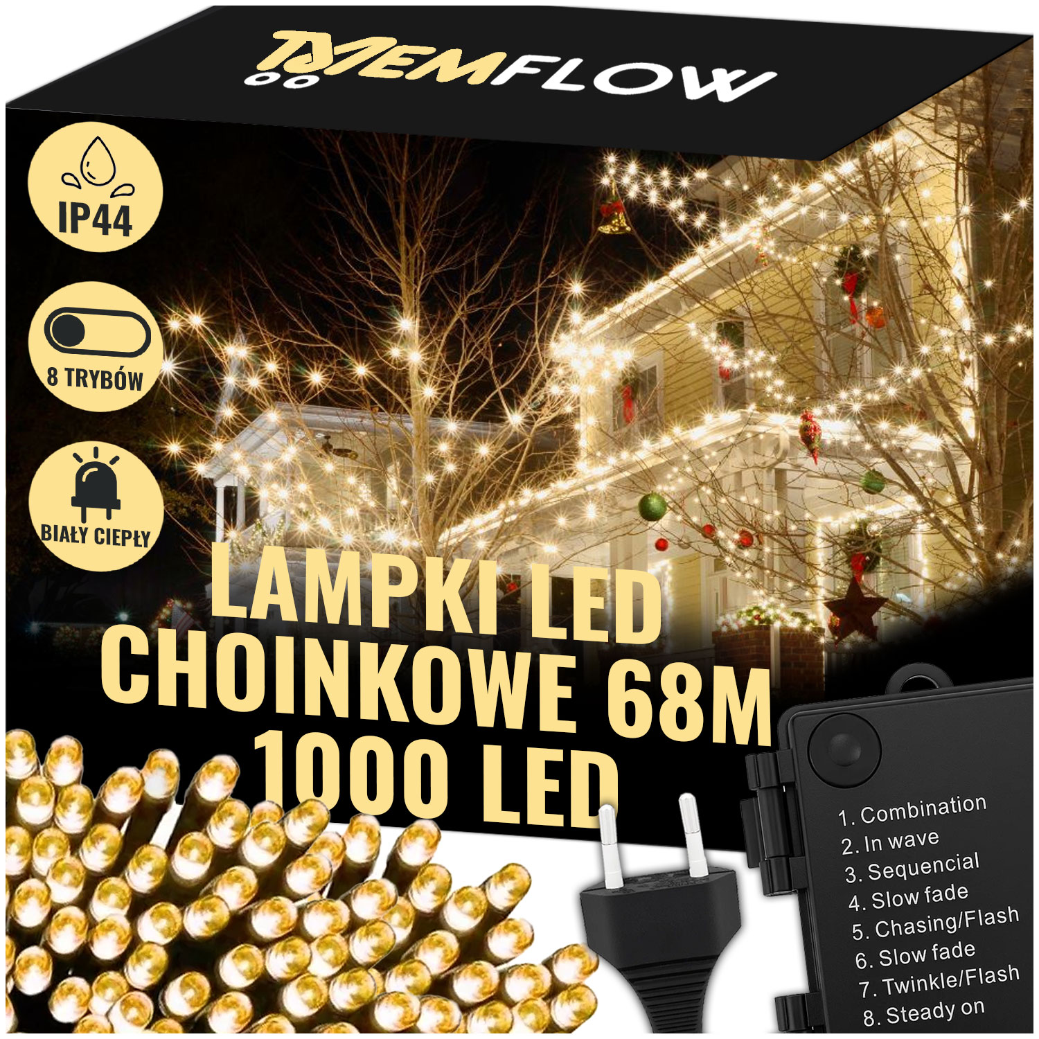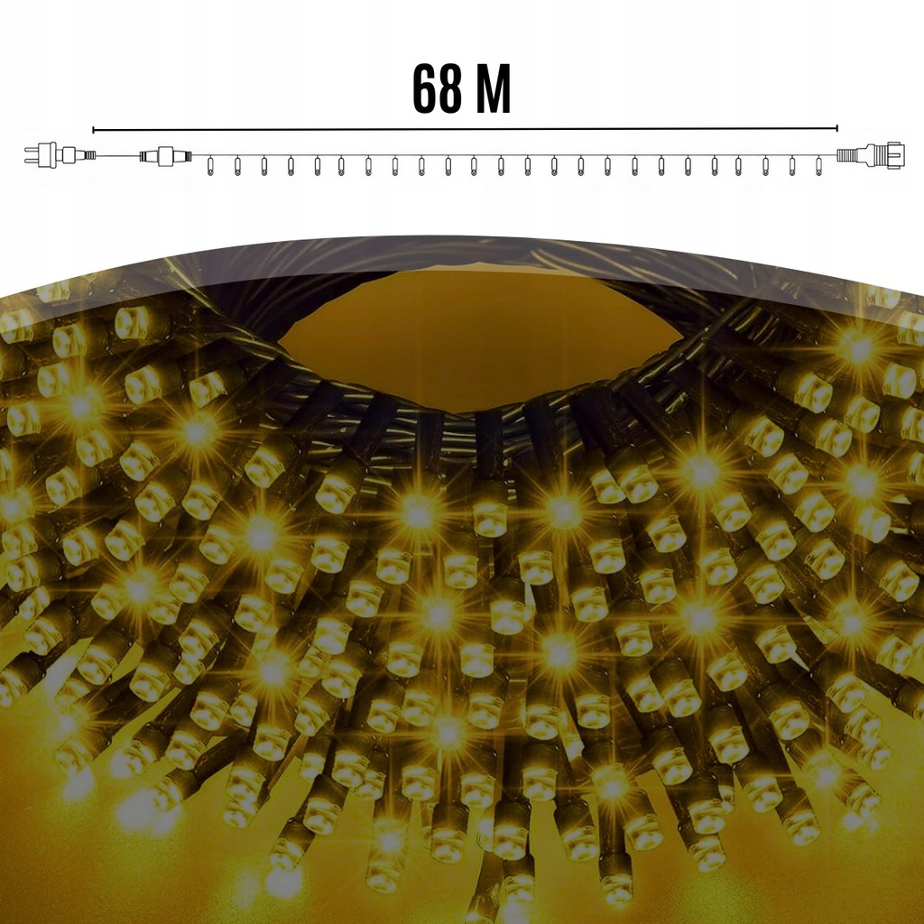 🎄 РОЖДЕСТВЕНСКИЕ ОГНИ 1000 LED 68 M - ТЕПЛОЕ БЕЛОЕ СВЕТЕНИЕ