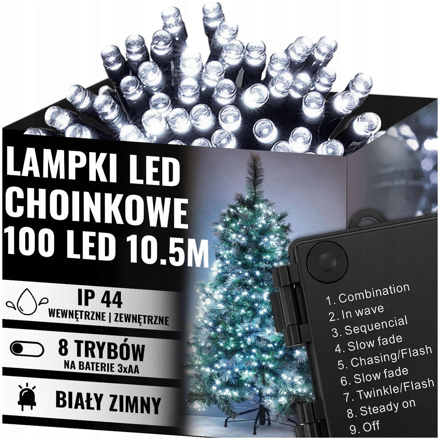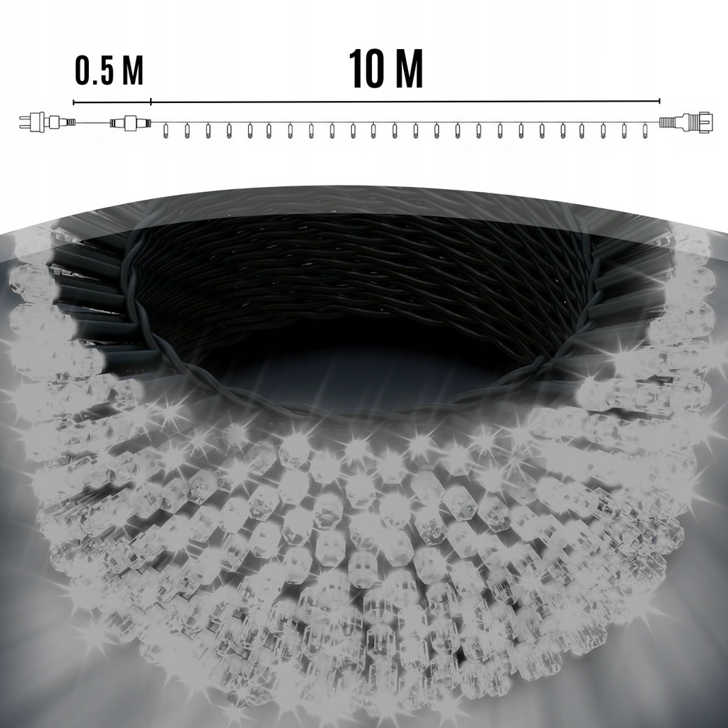 РОЖДЕСТВЕНСКИЕ ОГНИ 100LED НАРУЖНЫЕ ВНУТРЕННИЕ ХОЛОДНЫЙ БЕЛЫЙ 10,5M БАТАРЕЯ