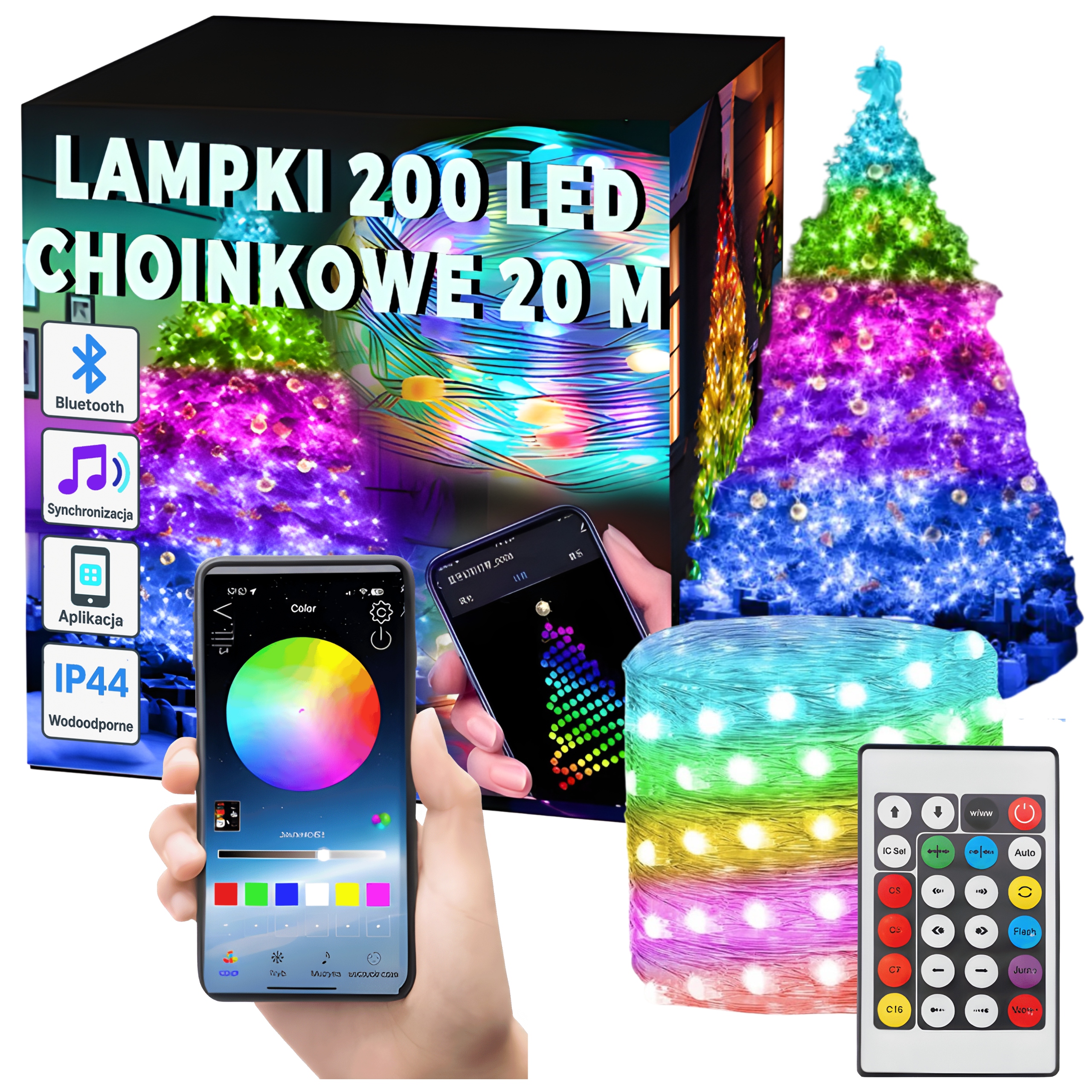 ЕЛОЧНЫЕ ОГНИ 200x СВЕТОДИОДНЫЕ ЛЕНТЫ РОЖДЕСТВЕНСКИЕ МНОГОЦВЕТНЫЕ RGB SMART WiFi 20 м