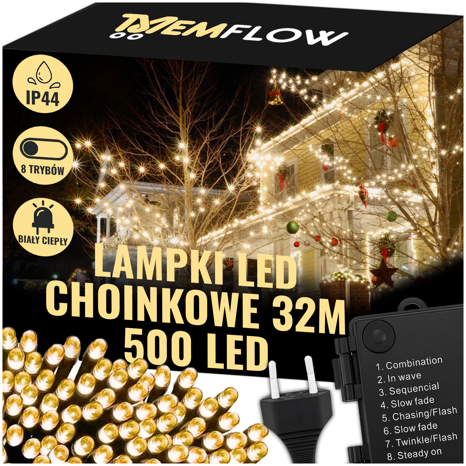 🎄 РОЖДЕСТВЕНСКИЕ ОГНИ 500 LED 32 М - ТЕПЛОЕ БЕЛОЕ СВЕТЕНИЕ