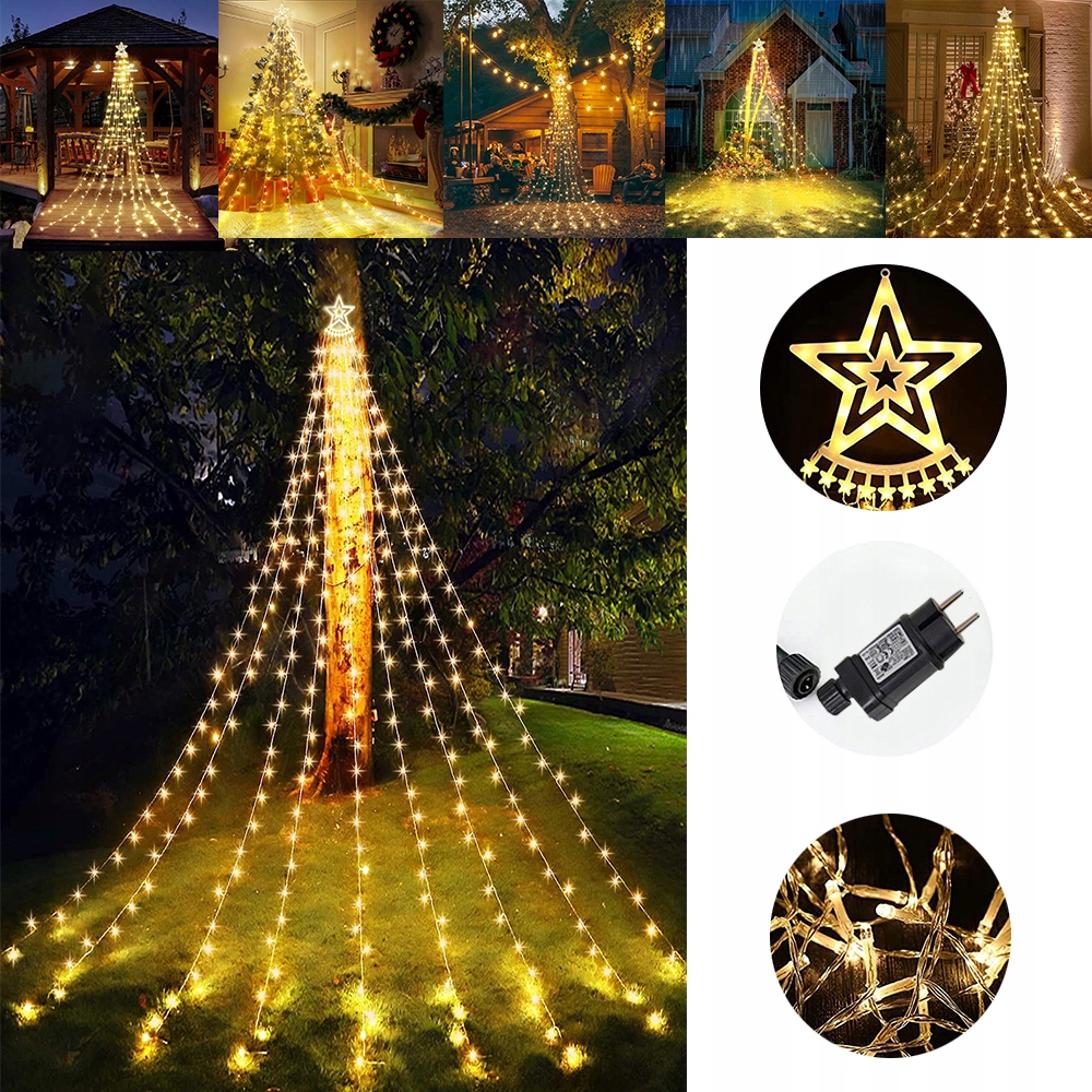 ✩【Украшение водопада со звездными огнями】: с 350 светодиодными лампами, 1 верхней звездой-пентаграммой с 9 световыми гирляндами, каждая нить с 36 светодиодными лампочками, большими звездными украшениями с 26 светодиодными лампочками, размер: 30 см/11,81 дюйма, каждая струна опускается на 3,4 м/11,1 фута. Длина кабеля с вилкой: 5 м/16,4 фута. Украсьте свое Рождество этими уличными рождественскими украшениями!