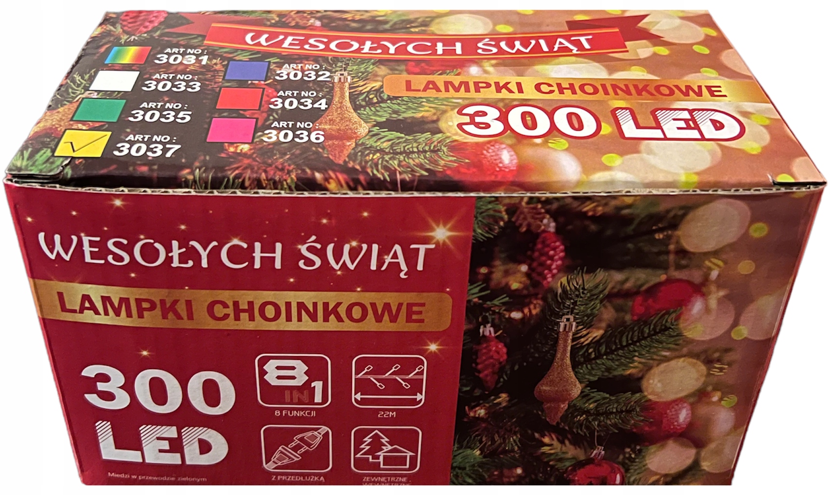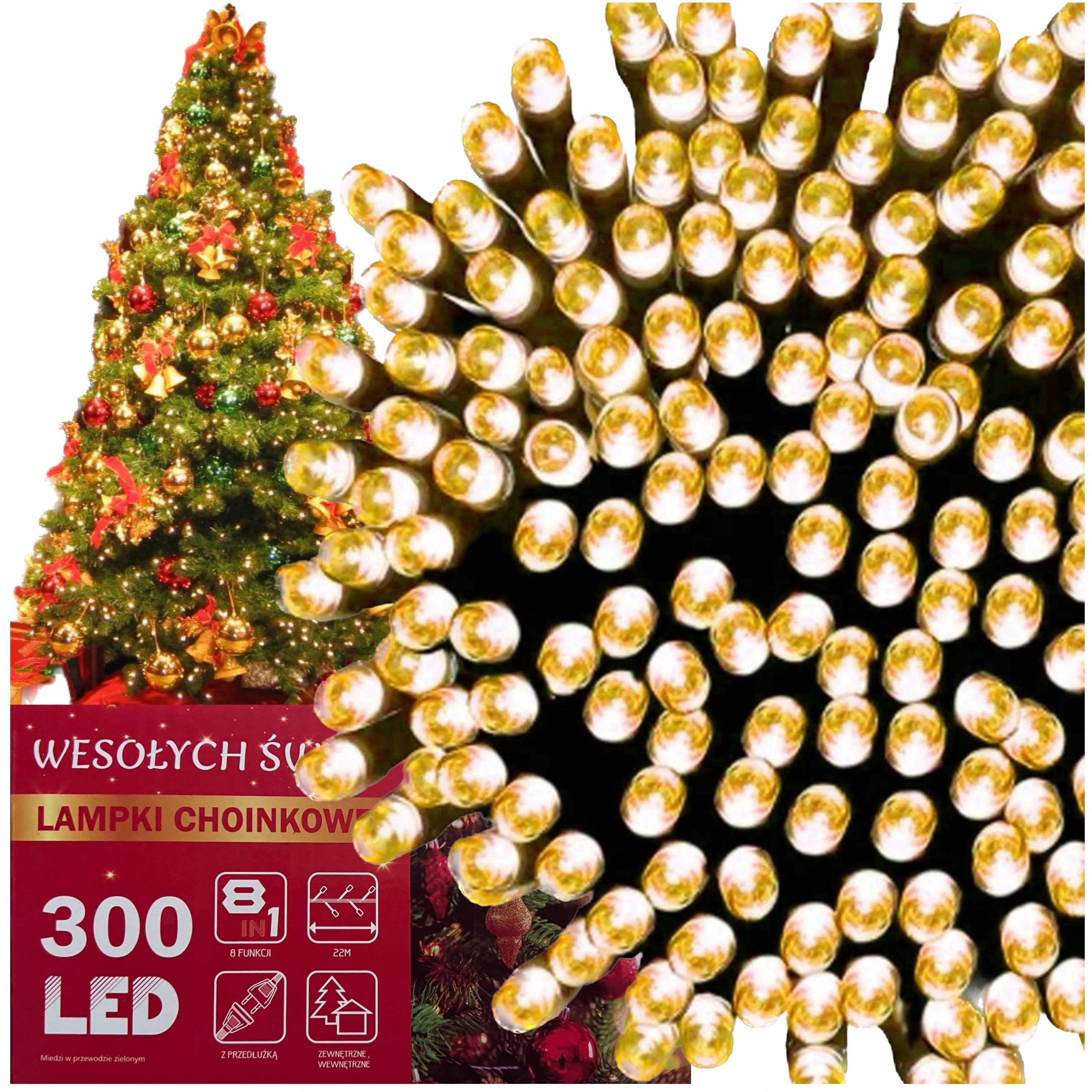 ЯЛИНКОВІ ВОГНІ 300 LED 22м ЗОВНІШНЯ ВНУТРІШНЯ ТЕПЛИЙ БІЛИЙ РІЗДВЯНИЙ