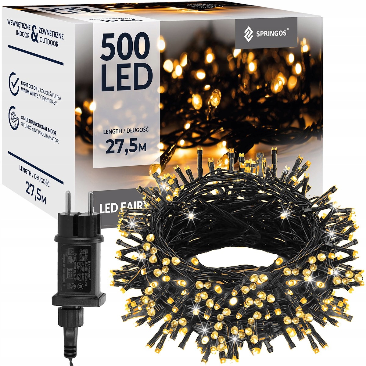 РОЖДЕСТВЕНСКИЕ ЕЛОЧНЫЕ СВЕТИЛЬНИКИ 500LED 27,5м НА УЛИЦЕ В ПОМЕЩЕНИИ ТЕПЛЫЙ БЕЛЫЙ РОЖДЕСТВЕНСКИЙ