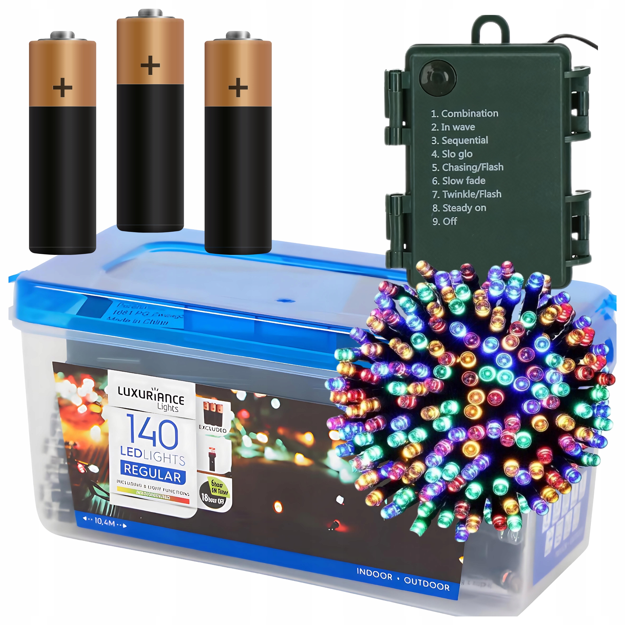 Ялинкові вогники НА АКУМУЛЯТОРІВ 140 LED 11м КОЛЬОРОВЕ ЗОВНІШНЄ освітлення