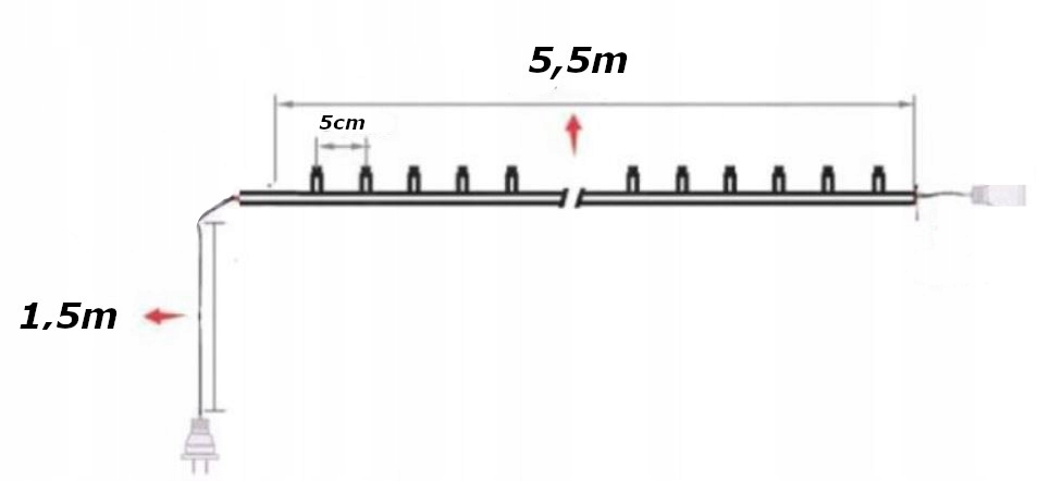 -7м - длина кабеля, освещающая часть, 5,5м + 1,5м длина силового кабеля,