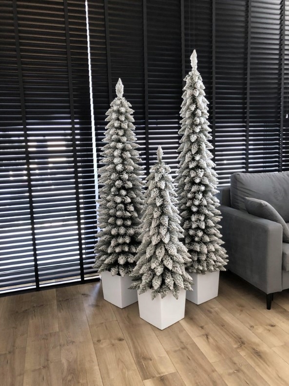 ⭐ Искусственная елка, стройная ель Закопане, заснеженная, белый цветочный горшок 160см - Код товара: Choinka160CM-SZDB