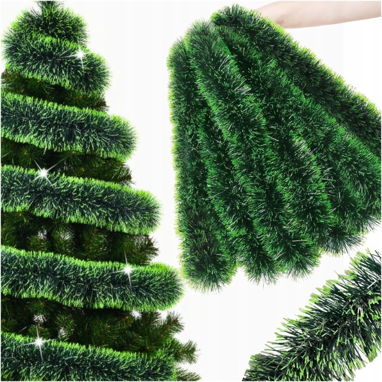ЕЛОЧНАЯ ЦЕПЬ ДЛЯ ЕЛКИ ЗЕЛЕНАЯ ГИРЛЯНДИЯ ТОЛЩИНОЙ 6М НОВОГОДНЕЕ УКРАШЕНИЕ 10СМ