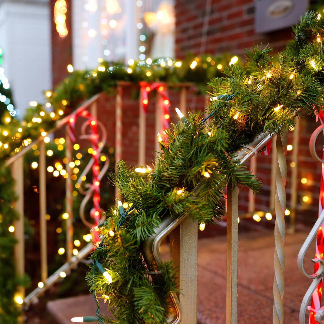 ГИРЛЯНД ИЗ ТОЛСТОЙ ЕЛКИ, УКРАШЕНИЕ ДВЕРНЫХ ПЕРИЛ - 270СМ