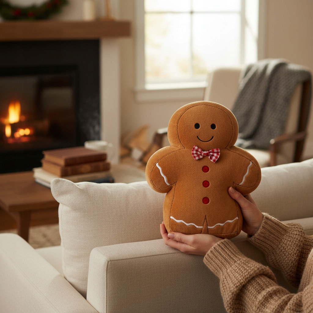 Мягкий плюшевый пряничный человечек - очаровательное украшение, которое согреет любой интерьер: его можно разместить у двери, елки, камина, на комоде или подоконнике, сразу создаст уютную рождественскую атмосферу.