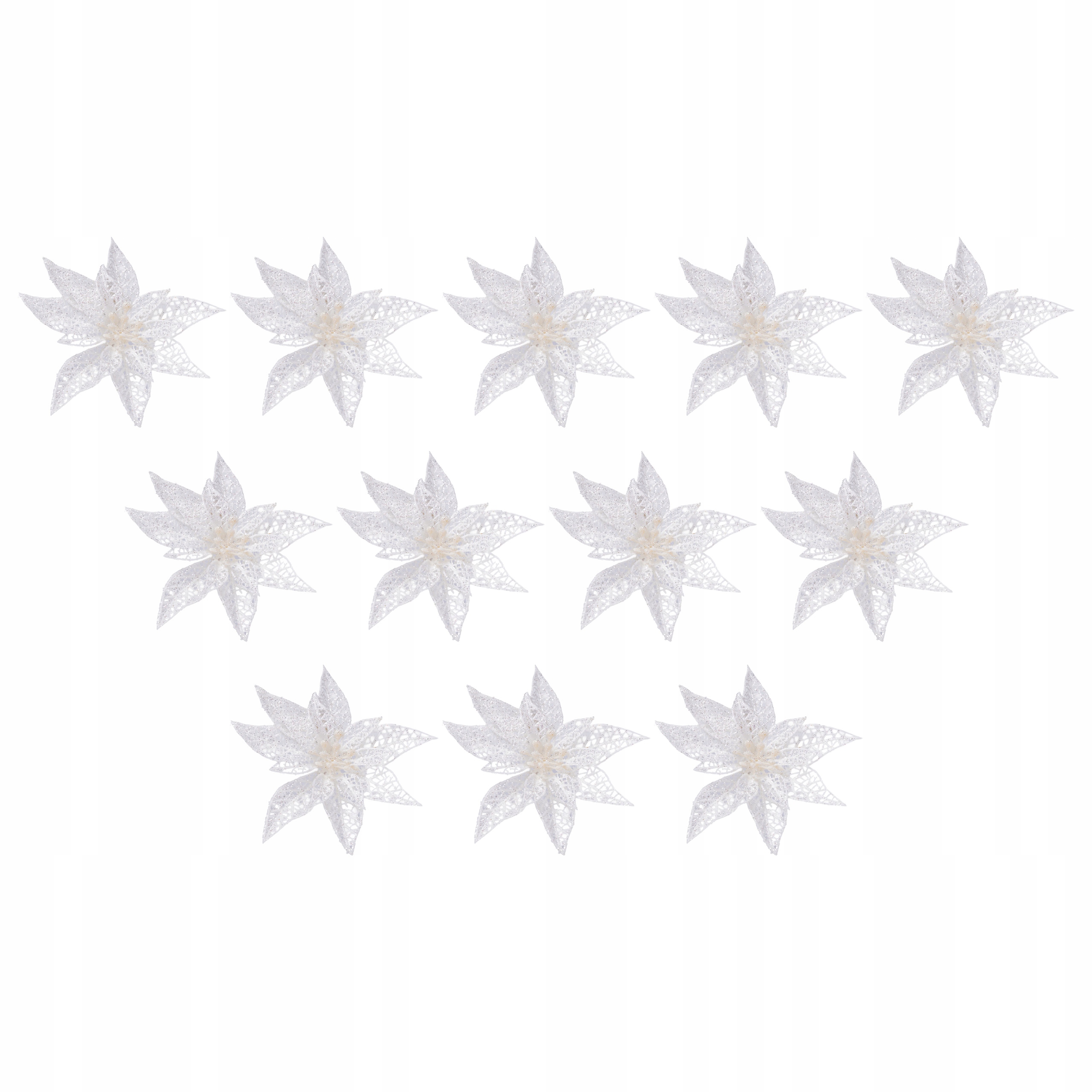 НАБОР РОЖДЕСТВЕНСКИХ ЦВЕТОВ НА ЗАЖИМЕ С БЛЕСКАМИ, белый