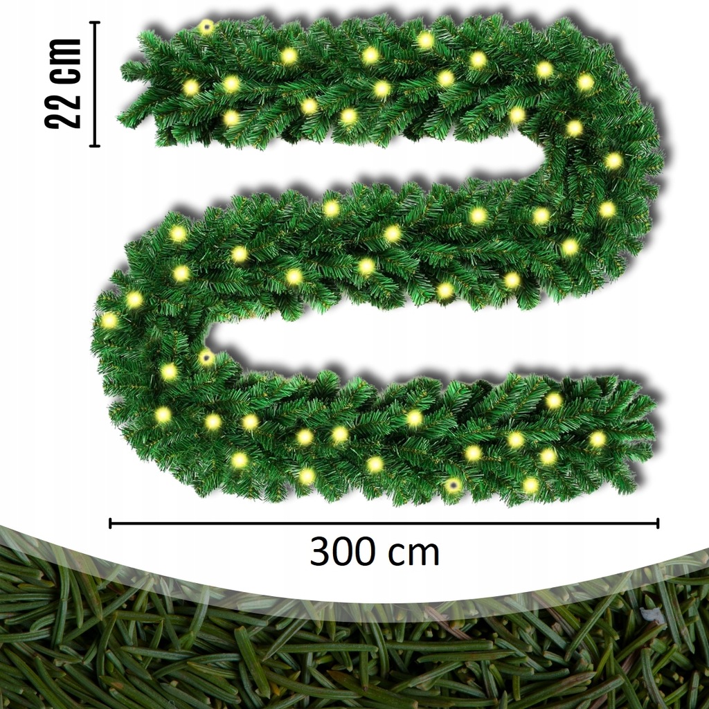 ЯЛИНОВКА ГІРЛЯНДА ланцюжок 300см ТОВЩА ЯК ЖИВА + 50 LED ЛАМП.