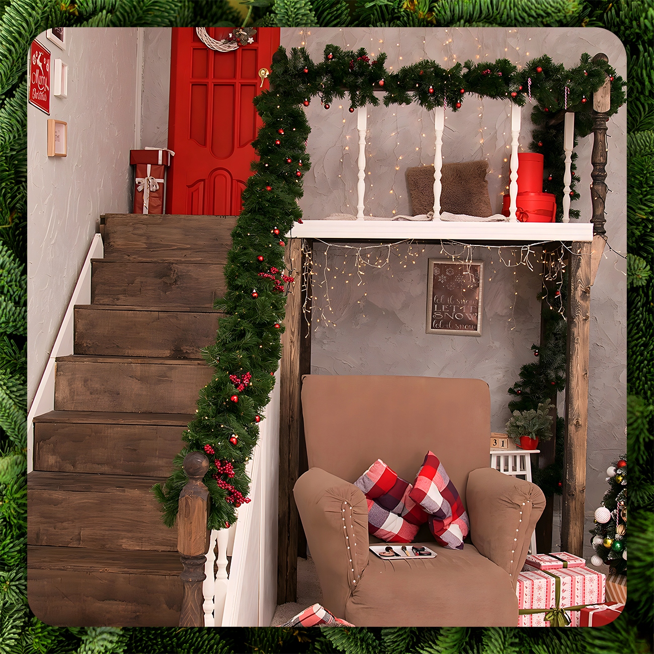 Его пышная хвоя и уникальный дизайн прекрасно подчеркивают рождественскую атмосферу. Идеально подходит для украшения рождественской елки, камина или двери и добавляет волшебства в любую комнату.