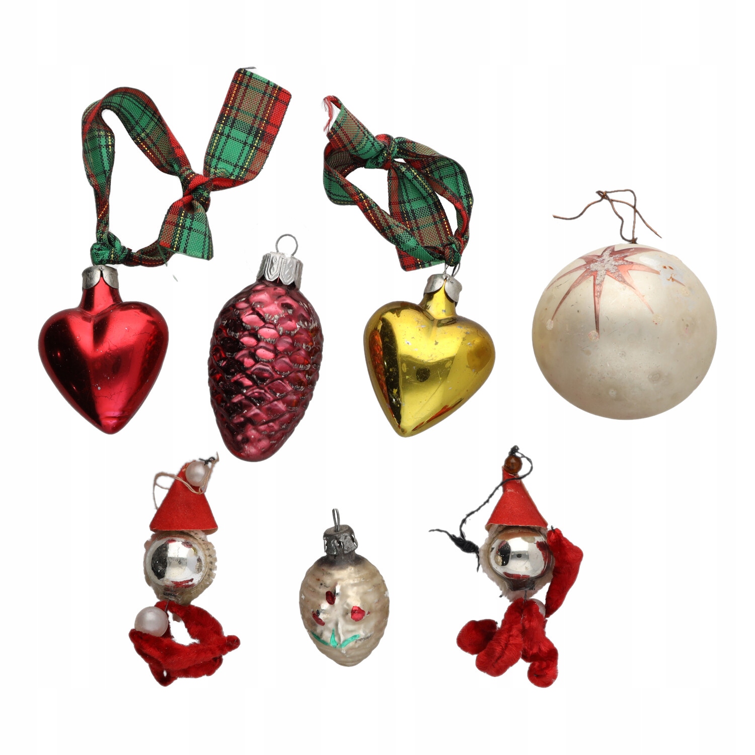 Набор из 7 елочных игрушек периода Польской Народной Республики. Следы использования. Размеры: диам. 5 см. Рекомендую