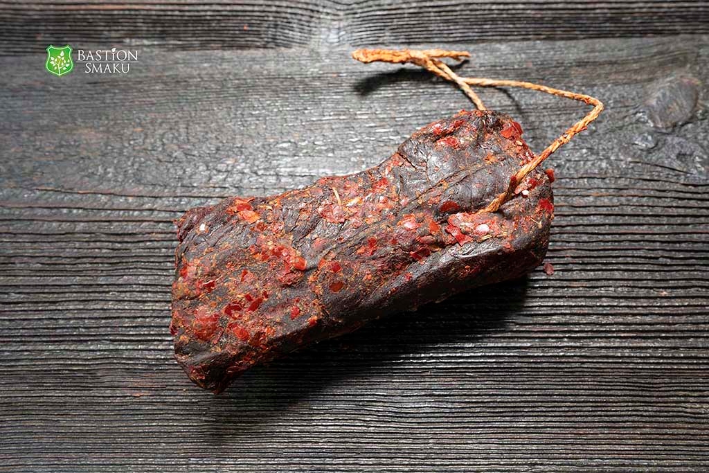 Сухое мацерированное мясо, оригинальный рецепт из натуральных ароматических растений. Смесь трав готовится индивидуально для каждой партии мясного ассорти.