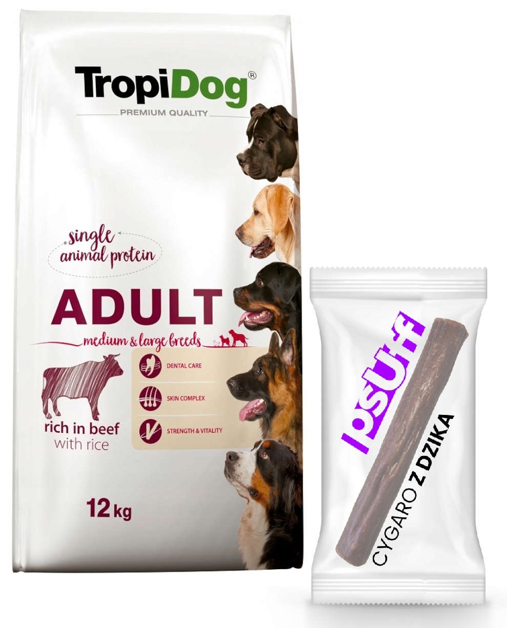 Тропидог Говядина 12кг Рис Премиум Взрослый Средний Крупные породы с говядиной
