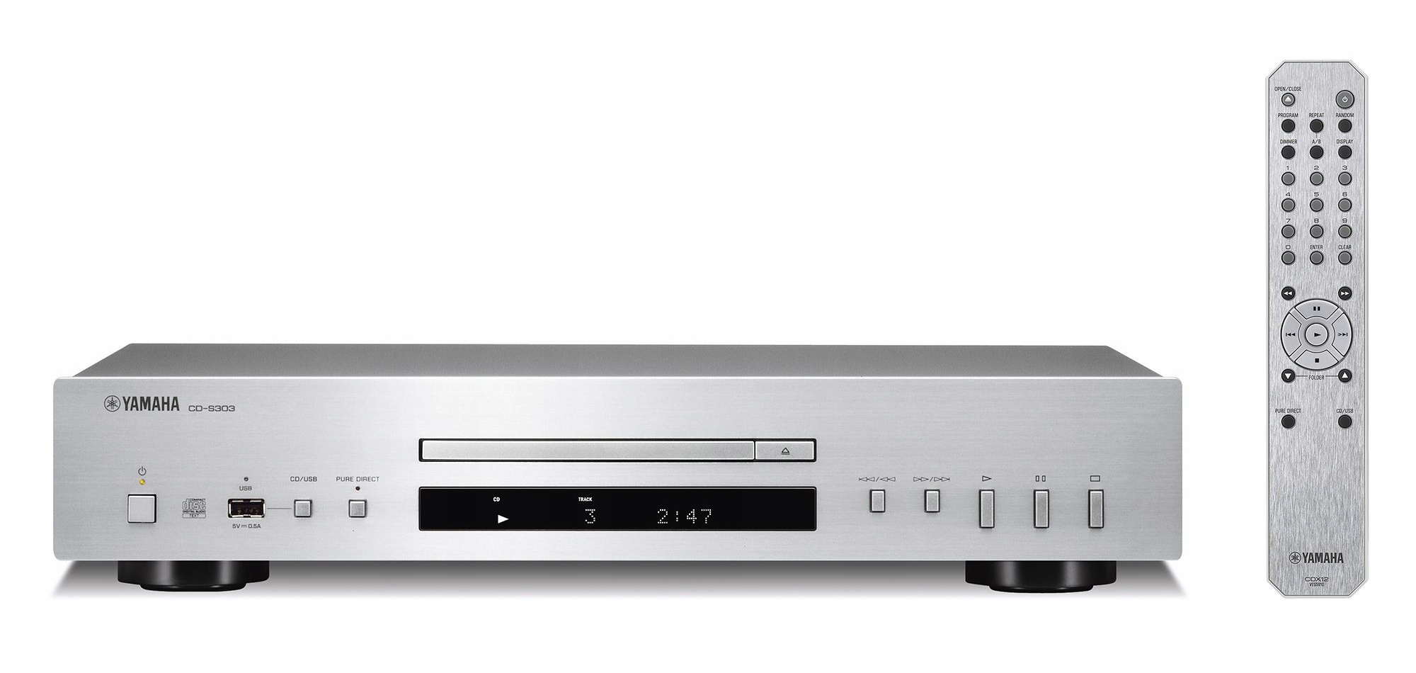 Модель CD-S303 имеет USB-вход на передней части, что позволяет сотрудничать проигрывателя CD с портативной флэш-памятью. Устройство поддерживает воспроизведение таких аудио форматов, как mp3, WMA, а также LPCM, AAC и FLAC. Аудиофайлы также можно воспроизвести с CD-R/RW.