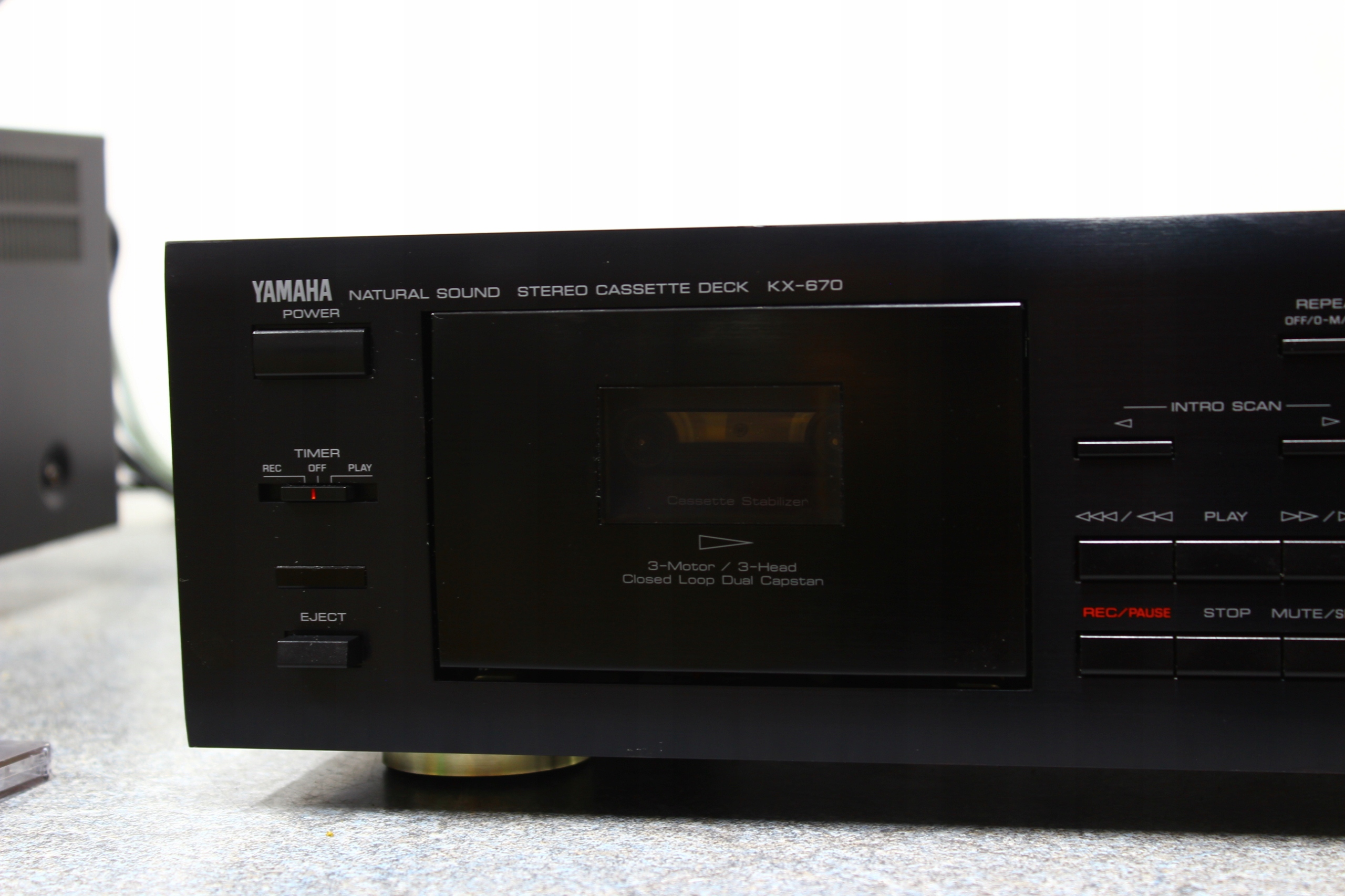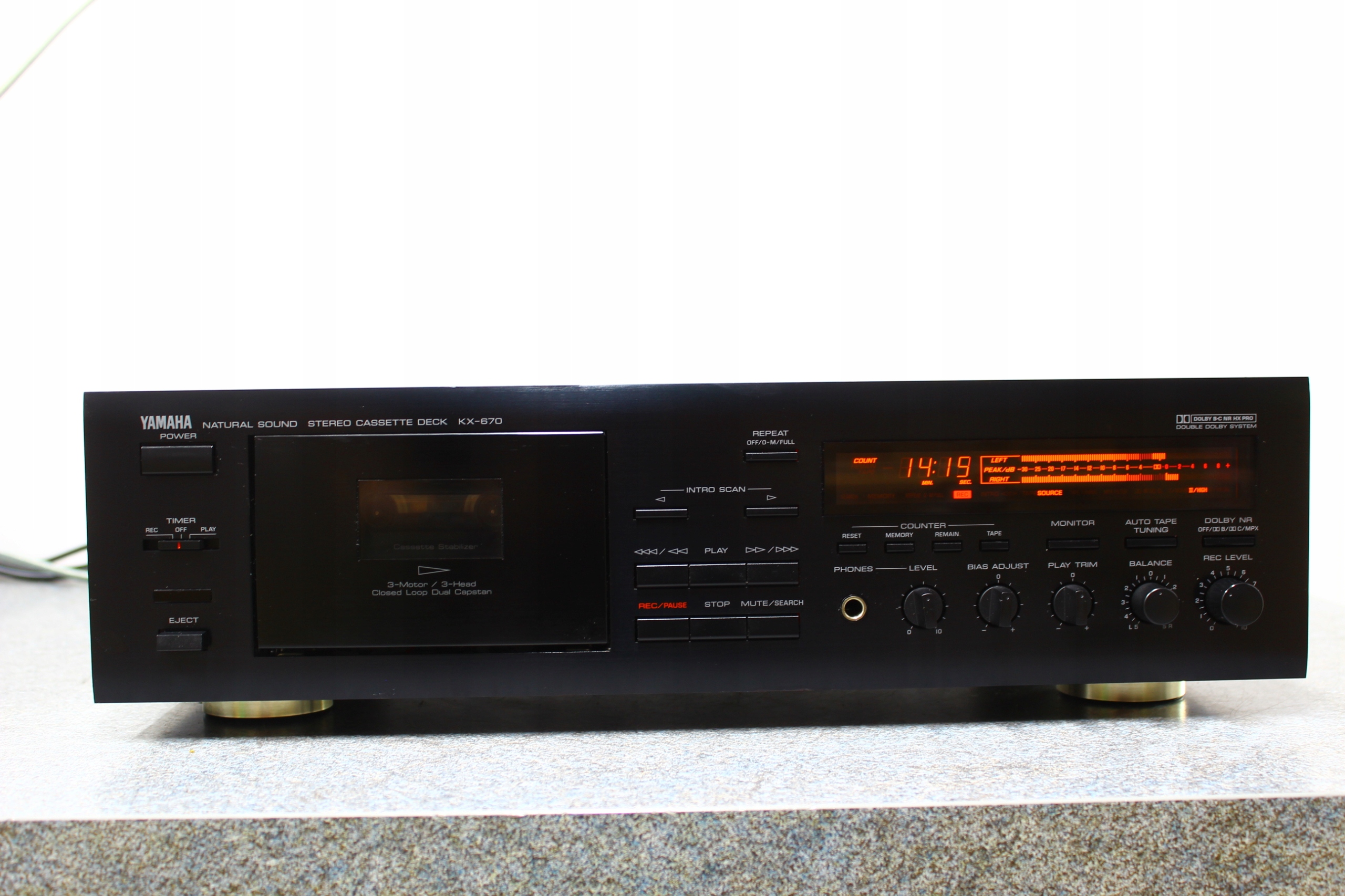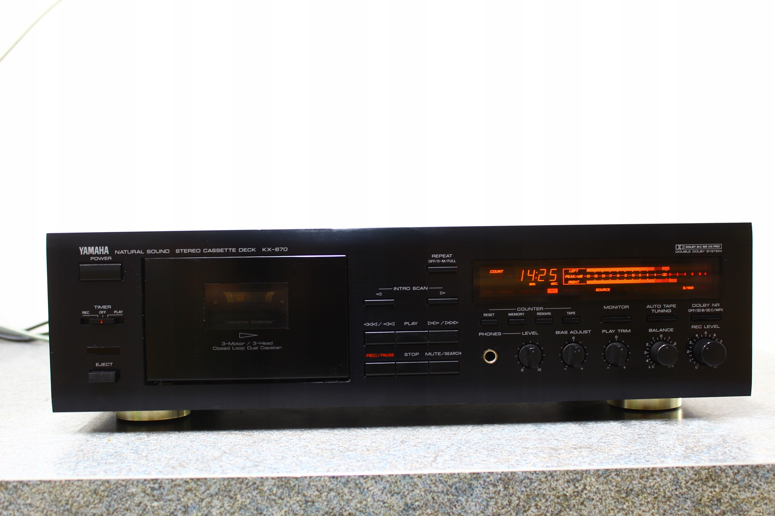 KX-670 был произведен в 1993-1995 годах. Это предпоследняя модель Yamaha с 3 головой, замененную KX-690 в последующие годы. У него есть все, чем должен гордиться флагман. Здесь используется тихий механизм с двумя закрытыми петлями. 3 двигателя, 2 ролика и 3 головы.