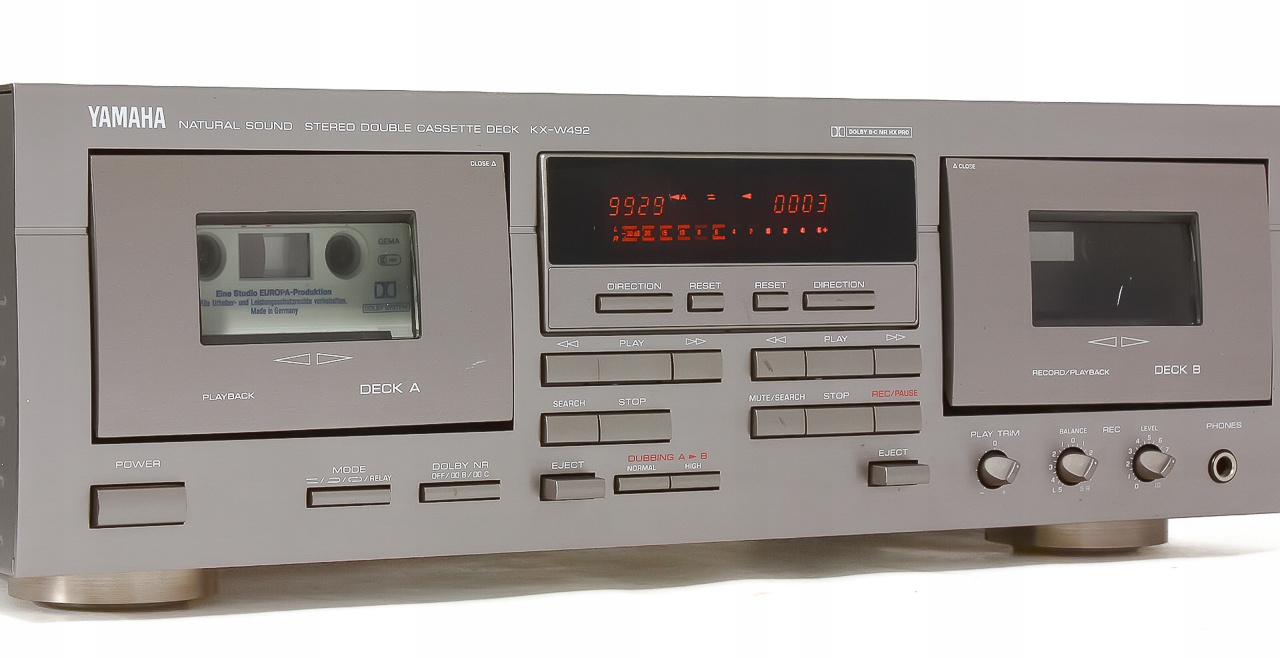 Я предлагаю для продажи двухклеточный магнитофон Yamaha KX-W492. Yamaha - хорошо известный бренд - он славится качеством компонентов и прочности. Это оборудование обеспечивает живой, чистый и глубокий звук. Сегодня трудно получить действительно хорошее устройство. Но эта модель является примером реального класса с момента, когда производители сосредоточились на качестве и заботились о каждой детали. Вы можете это услышать!