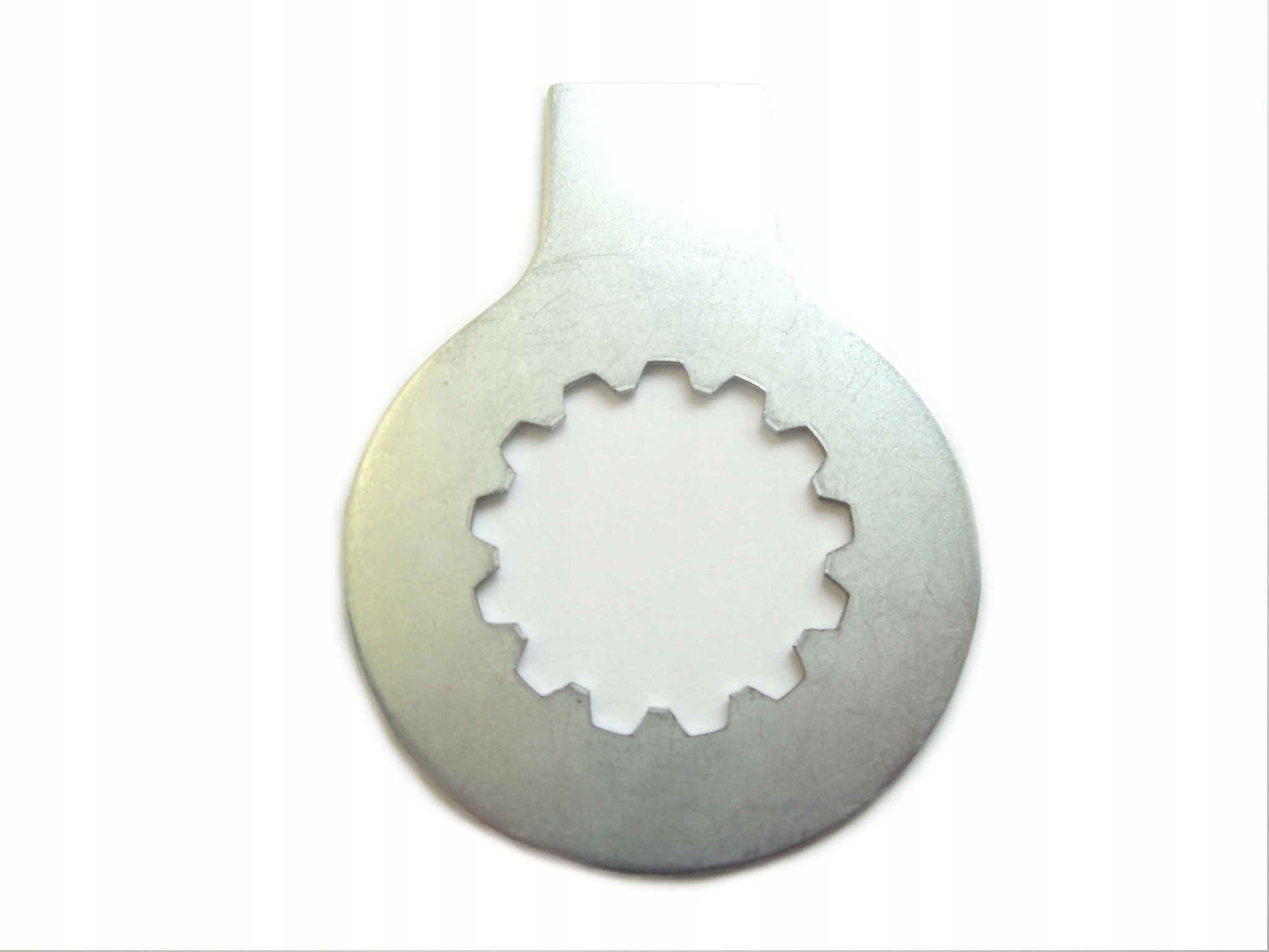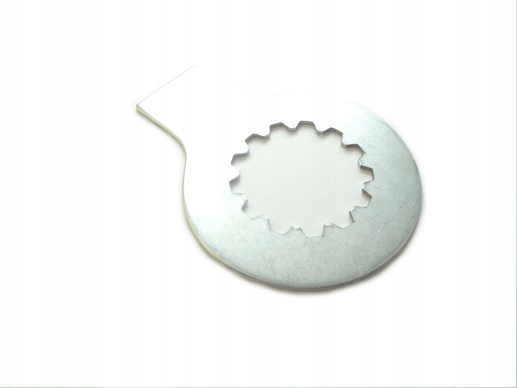Новая шайба, фиксирующая гайку от откручивания выходной вал коробки передач (на передней звездочке).