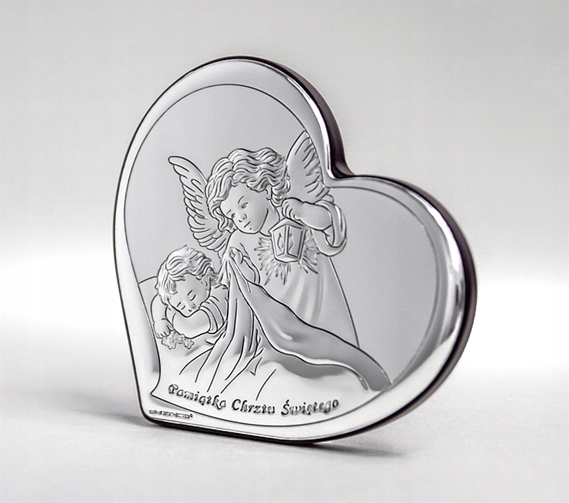 Aniołek Stróż XL Obrazek srebrny na Chrzest Pamiątka Chrztu z Grawerem