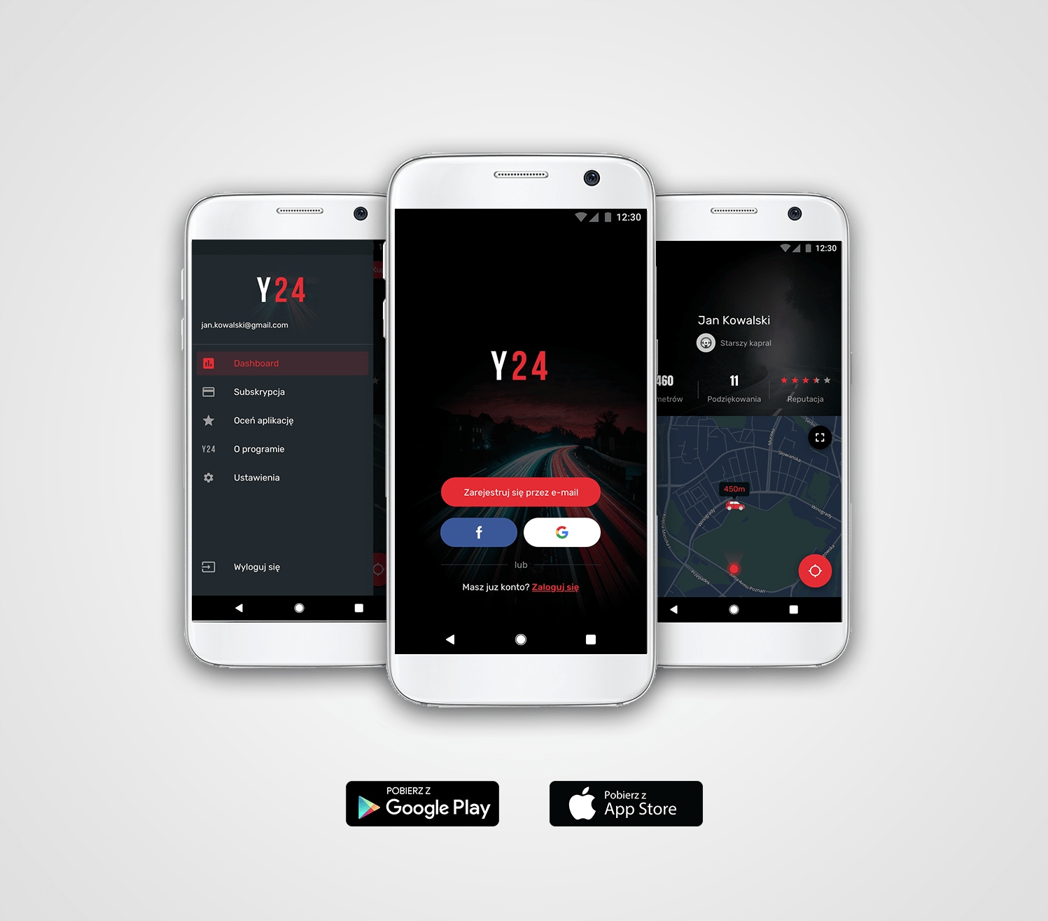 Скачайте бесплатное приложение Y24 и получите дополнительные возможности. В Y24 вы можете проверить местоположение вашего автомобиля на карте и просмотреть историю ваших уведомлений и благодарностей. Вы также можете легко продлить подписку на свой Yanosik на уровне приложения.