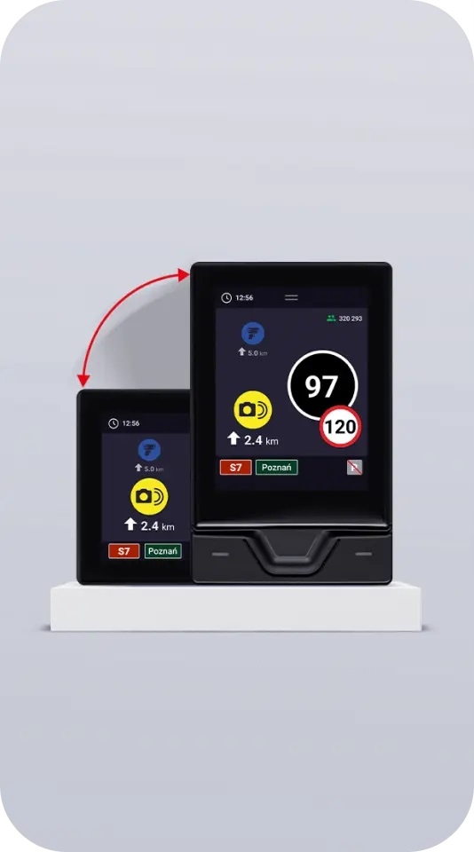 В новой версии вы найдете еще больше информации - вы не только будете знать расстояние до первого события, но и увидите, насколько далеко следующее. Управлять новым дисплеем Yanosik RS — сплошное удовольствие.