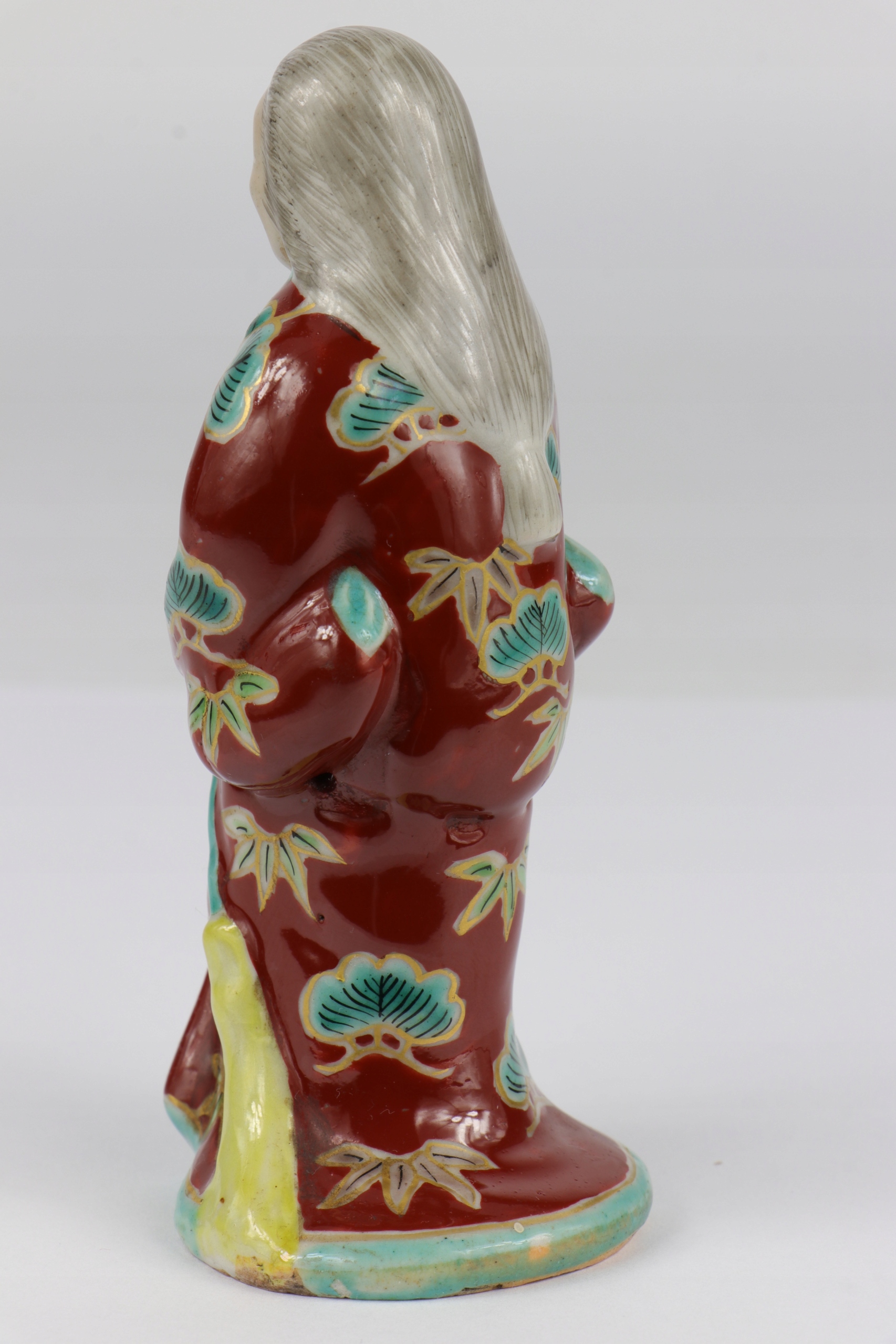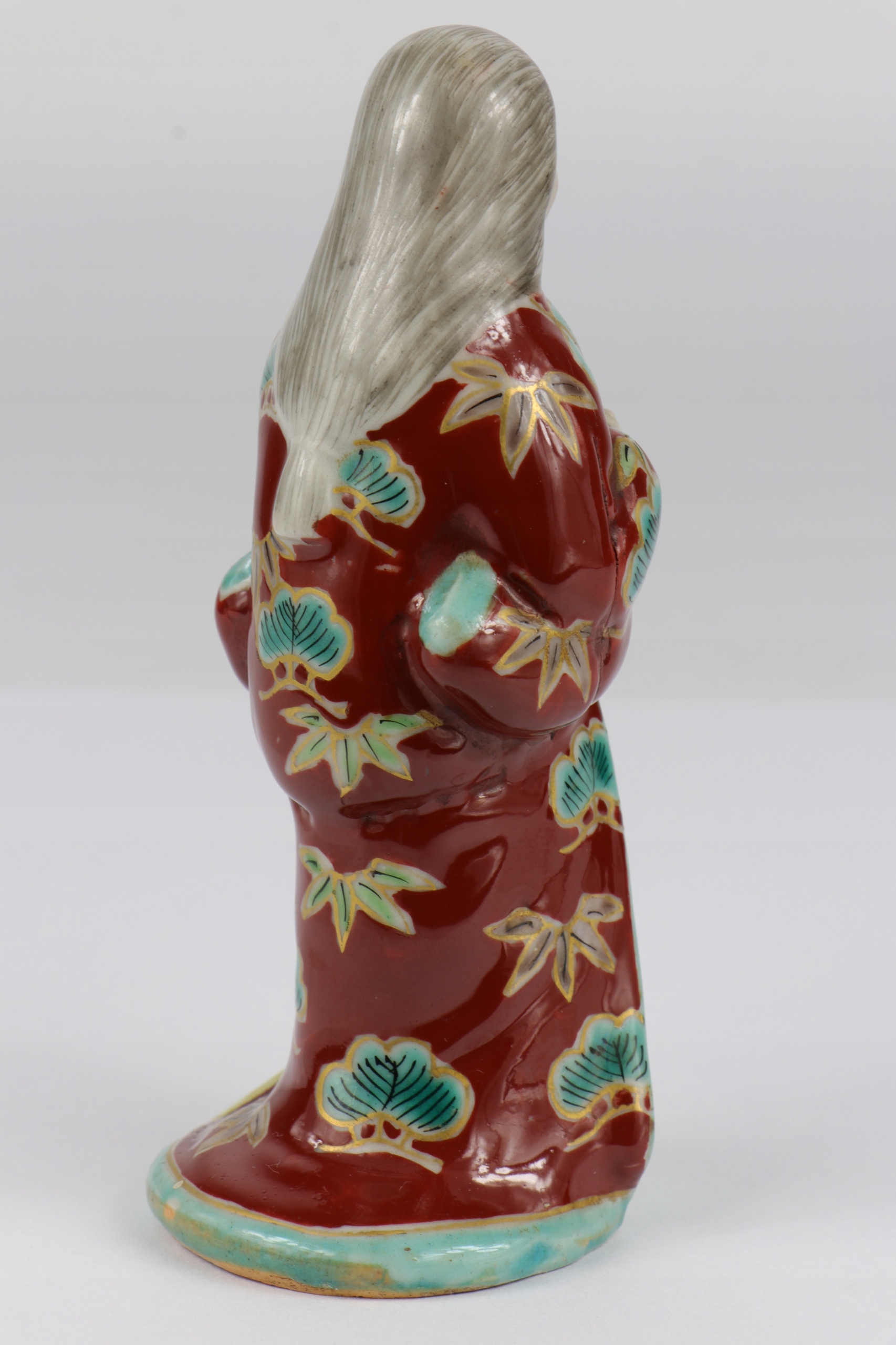 Японская фарфоровая фигурная фигурная рука. Японская женщина в долгах Кимономии, может быть, очень густой массивной коллекционера Гейша (?). Остекление треснуло.