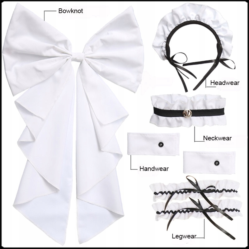 Комплектация: 1 топ + 1 юбка + 1 головной убор + 2 руки + 1 галстук + 2 чулки + 1 бант