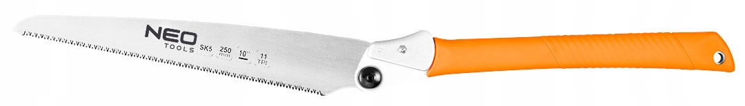 Узкое лезвие изготовлено из стали SK5, его длина составляет 250 мм. Зубья с трехсторонней заточкой и индукционной закалкой значительно снижают сопротивление резанию. У пилы есть возможность складывания полотна.