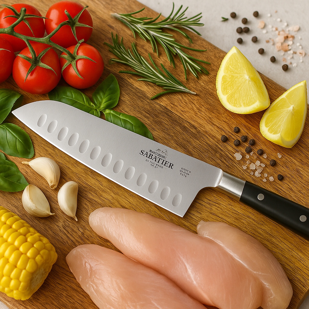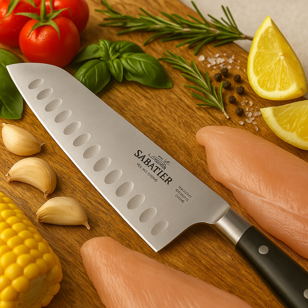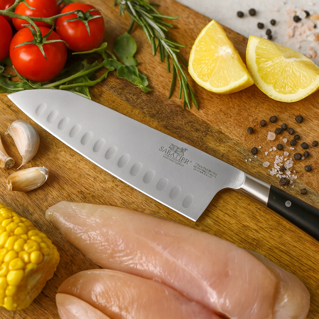 Японский кухонный нож Santoku 18 см Лев Сабатье из нержавеющей стали