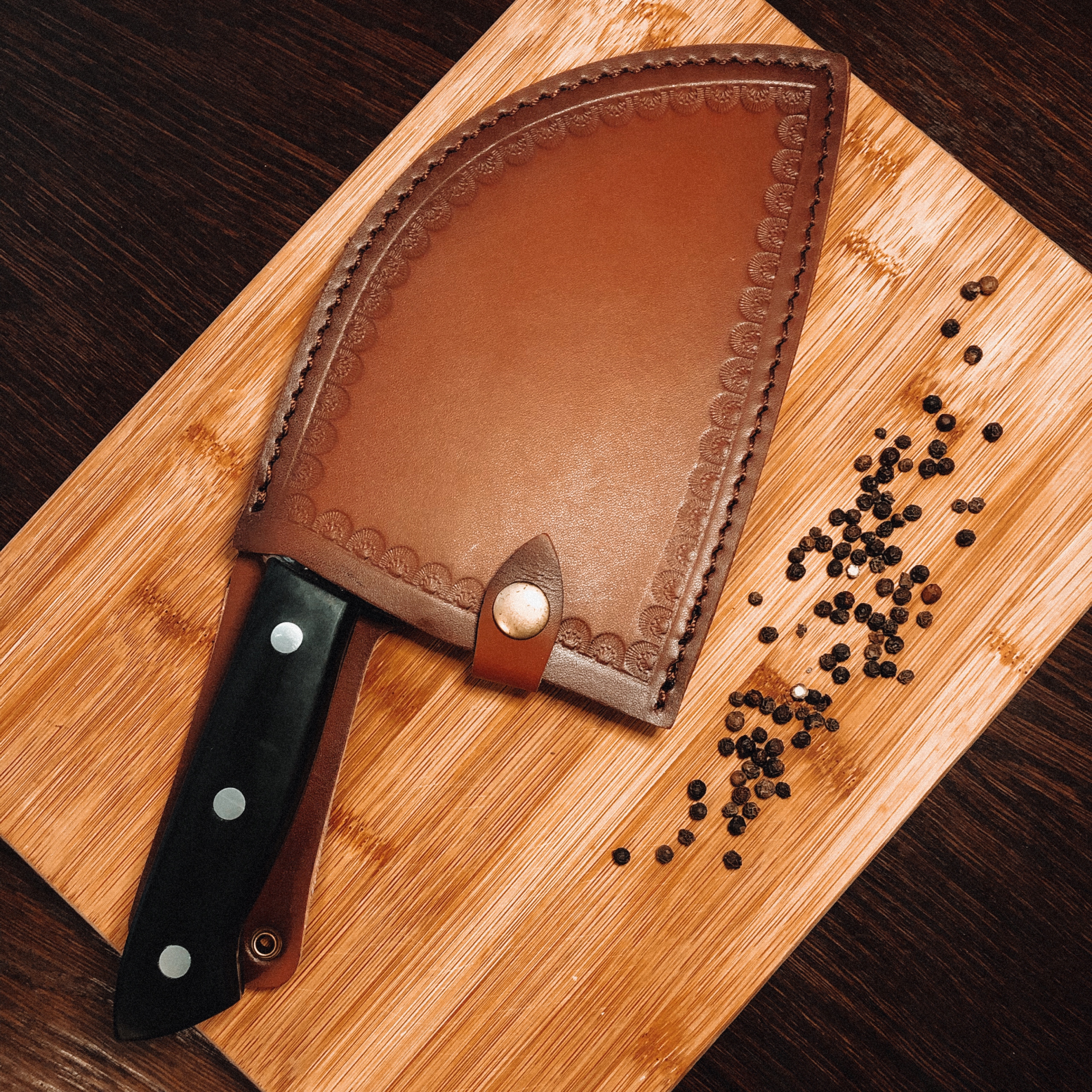 Вместе с тесаком вы получаете кожаный чехол, который позволяет удобно хранить и транспортировать.