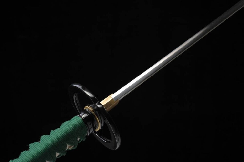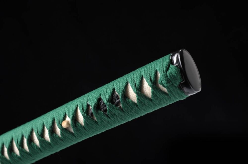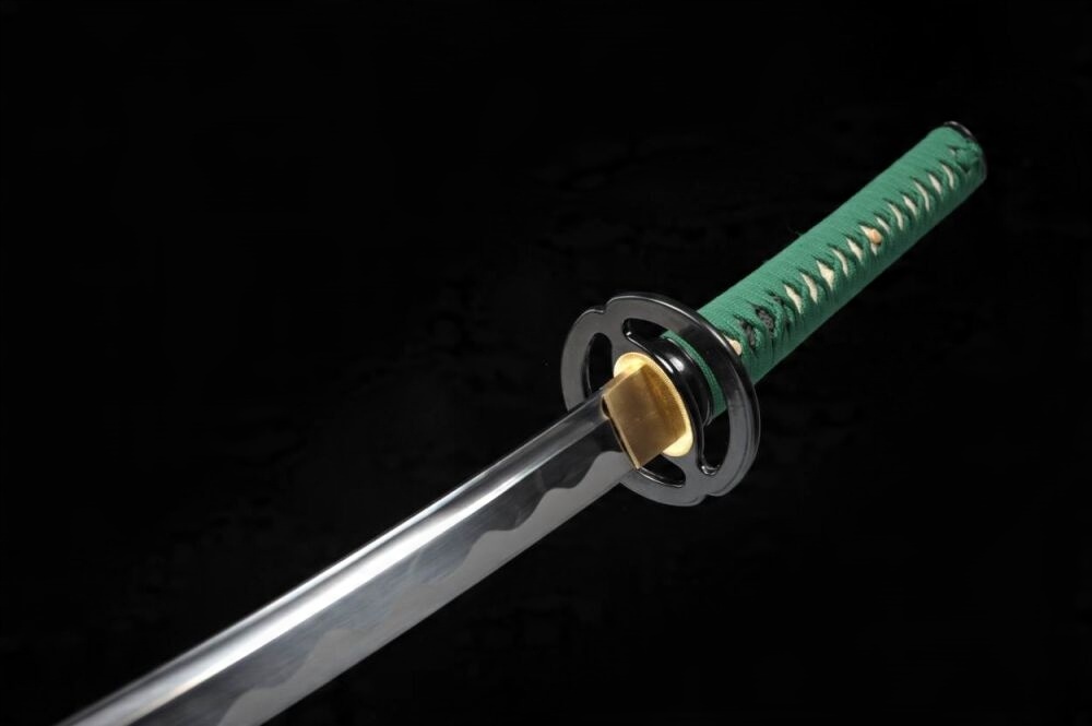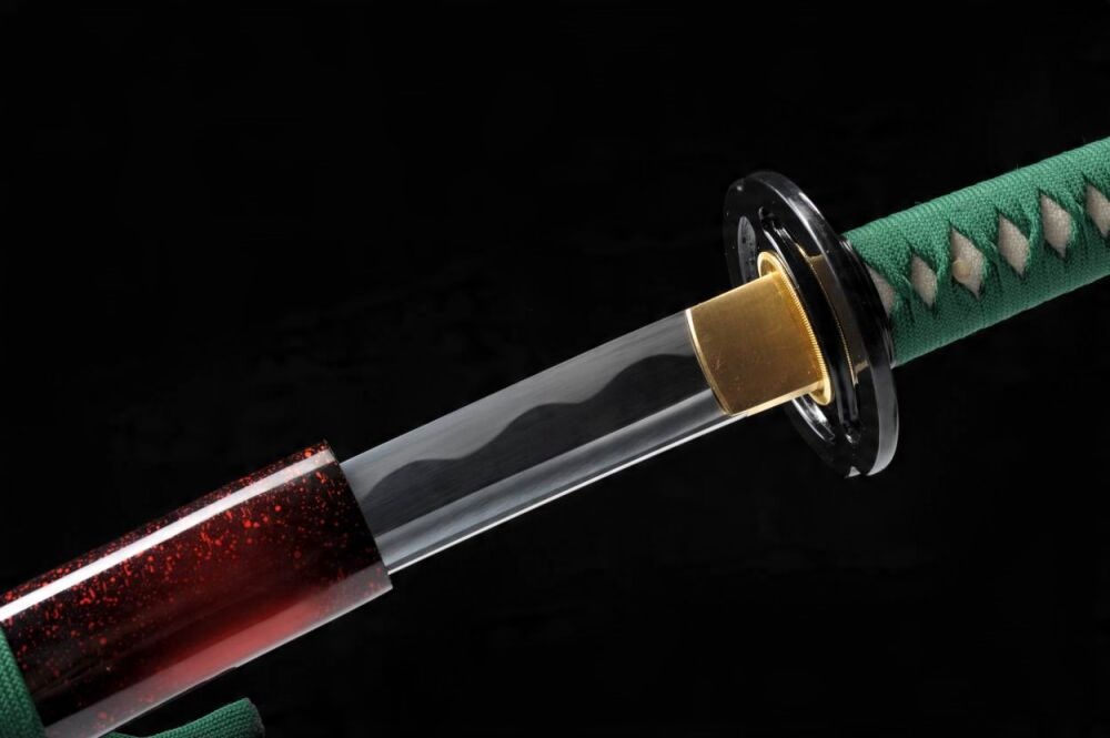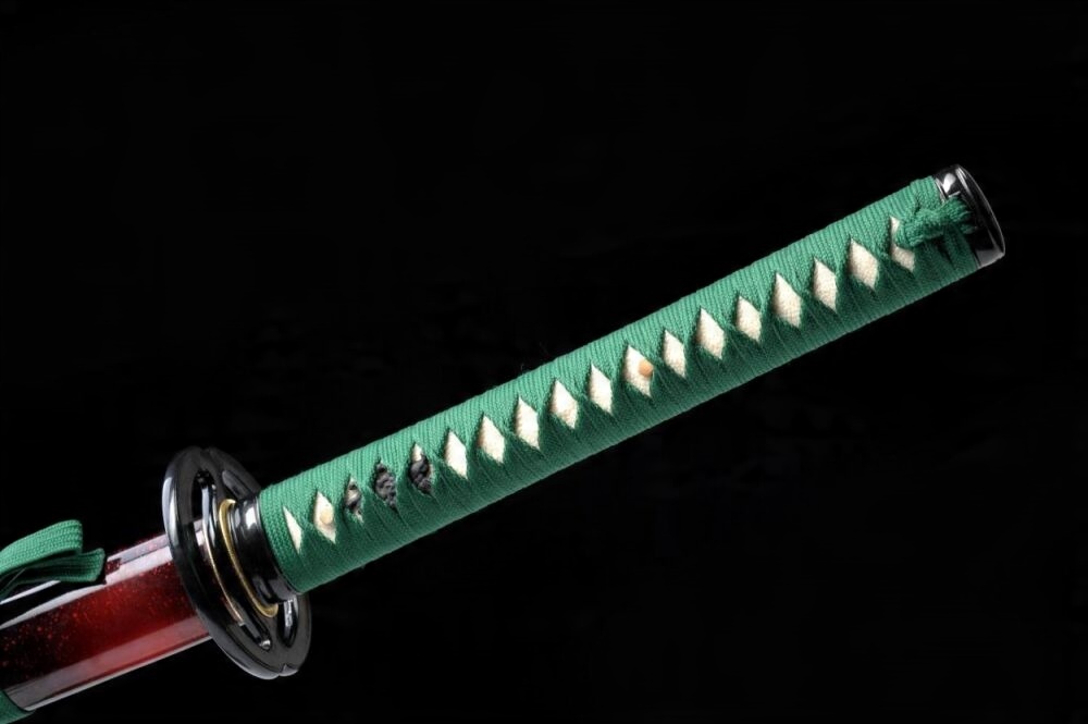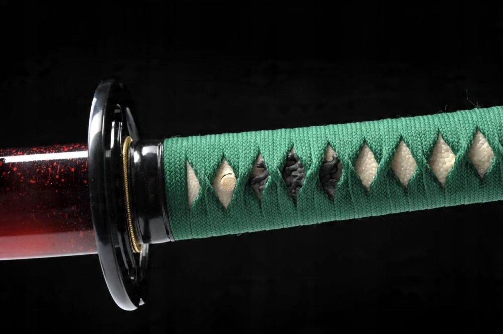 Эта катана изготовлена в небольшой кузнице с использованием только традиционных оружейных технологий и оригинальных материалов. Рукоять состоит из двух кусков твердого дерева японской магнолии, склеенных рисовым клеем и покрытых кожей ската. У него есть кольцо, называемое фучи, со стороны рукоятки, и воротник, закрывающий лезвие у основания рукоятки, называемый хабак. Цуба? Дисковая ручка из цветного металла, богато декорированная. Изогнутый клинок, выкованный кузнецами из стали 1060 по технологии, передаваемой из поколения в поколение.