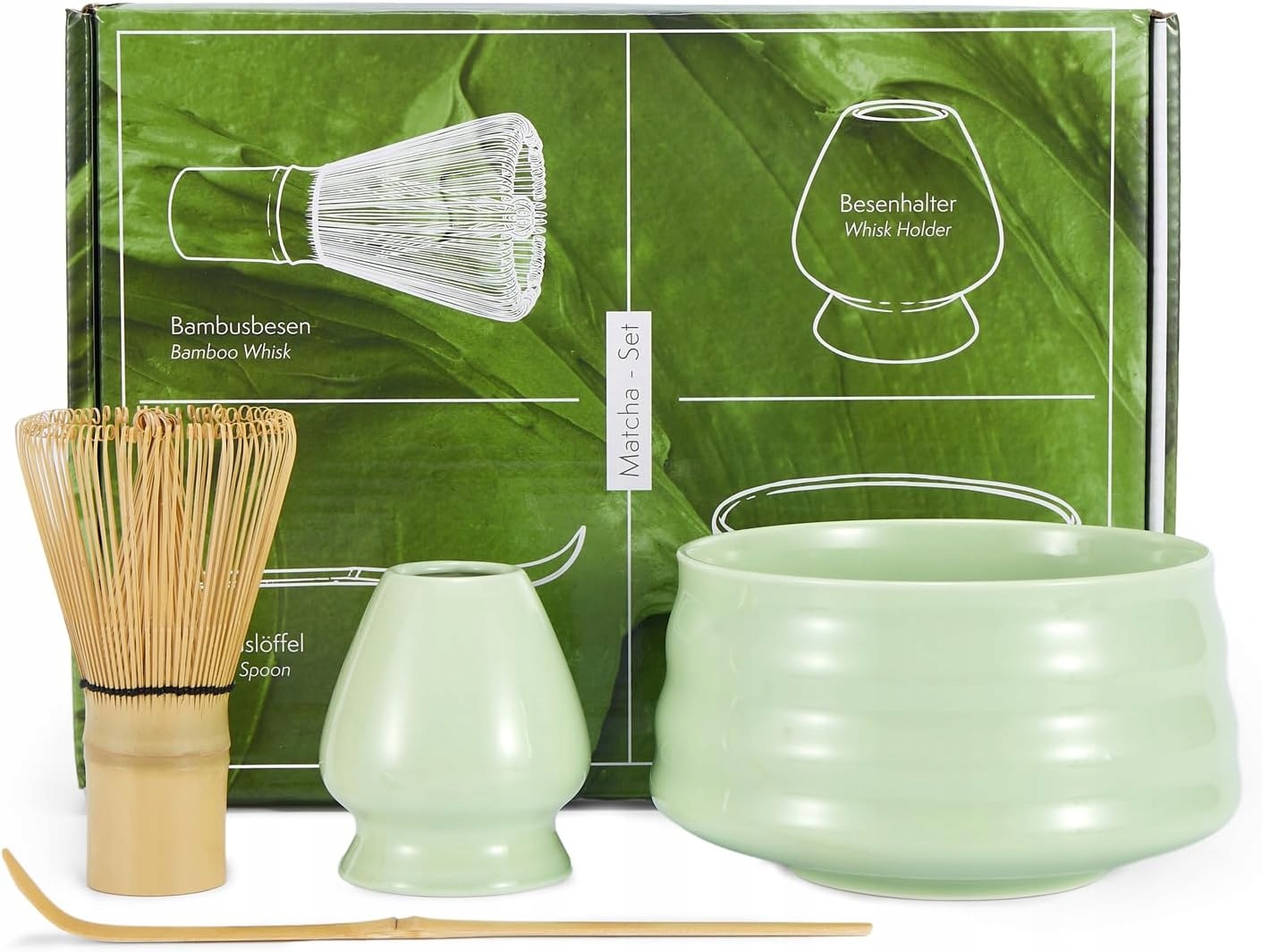 🍵【Полный комплект】: Этот чайный набор матча включает в себя все необходимое для приготовления идеальной чашки традиционной японской чайной церемонии матча. В этот чайный набор матча входит изысканная зеленая керамическая миска, изысканный зеленый керамический держатель для венчика, бамбуковый венчик и бамбуковая чайная ложка.