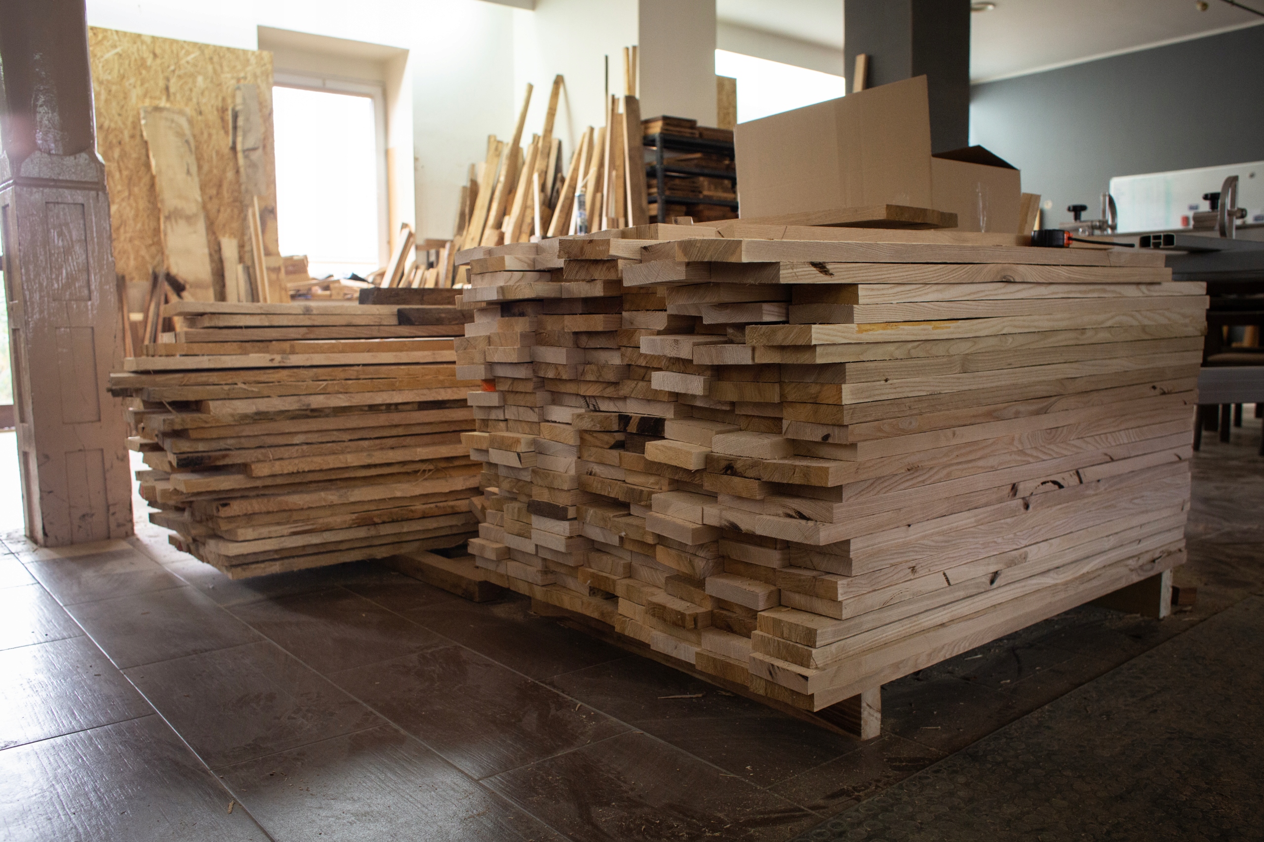 Столярный цех производит изделия из древесины польского происхождения, основное сырье – древесина дуба, ясеня и бука. Это 100% толщина, массив древесины, без шпона, мебельного щита, шпона и т.д. Древесину мы получаем из профессиональных сушильных камер, а в наших помещениях имеется профессиональная вентиляция для поддержания соответствующих параметров сырья.