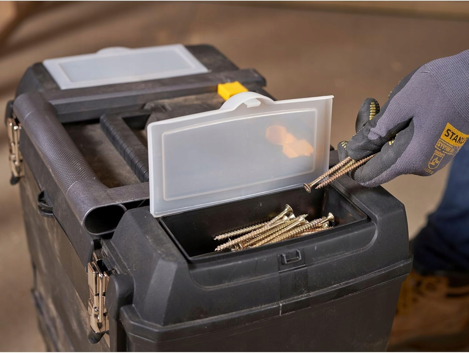 Хранение: Нижняя часть с большим вместительным отделением. 25 литров, идеально подходит для хранения более крупных инструментов.