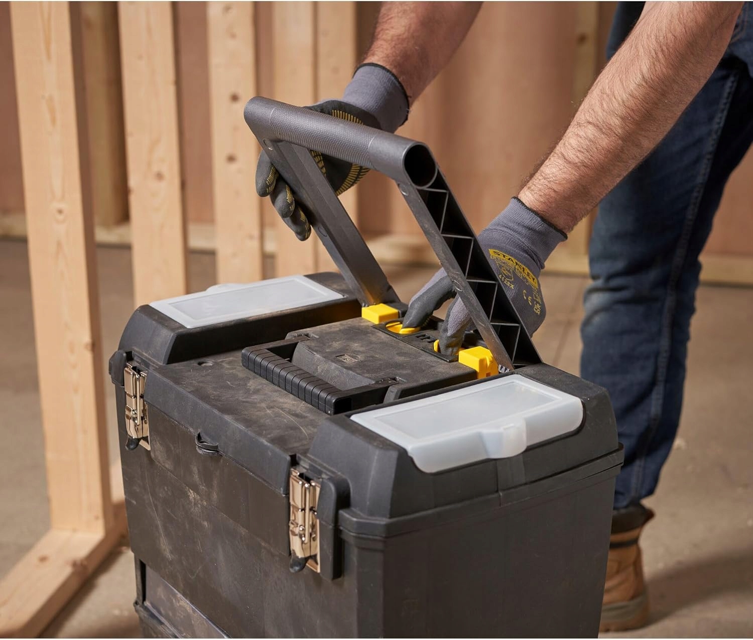 Ручка и транспортировка: Эргономичная цельная ручка обеспечивает комфорт при переноске, а прочные транспортировочные колеса устойчивы к нагрузкам и гарантируют плавность транспортировки.