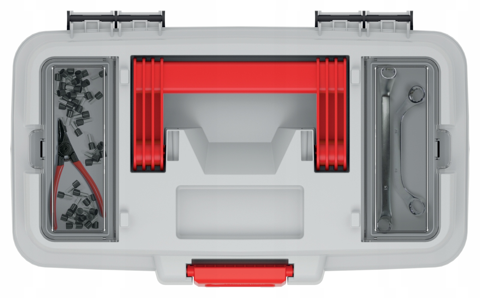 - Прозрачная крышка органайзера: изготовлена из прочного поликарбоната.