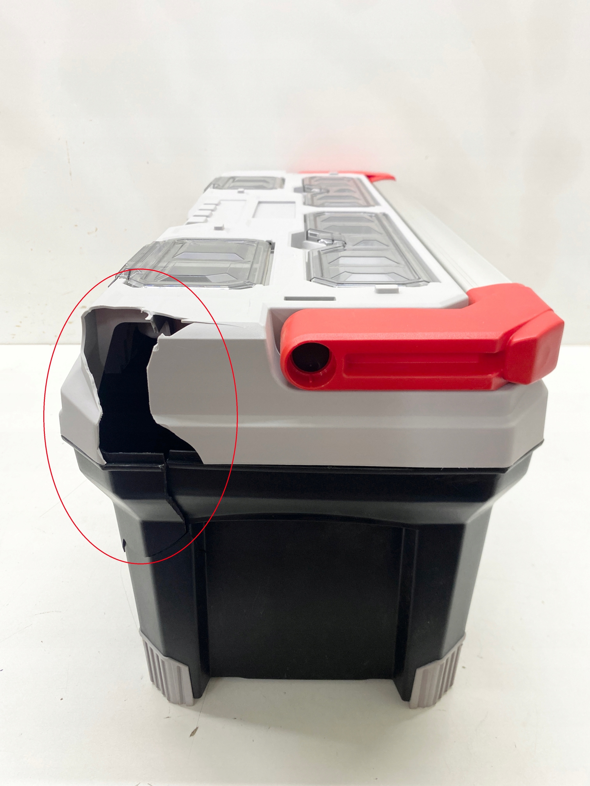 Корпус коробки изготовлен из прочной полимерной смеси, а углы усилены эластомером, что обеспечивает ударопрочность и износостойкость. Дополнительно используются прочные застежки из АБС-пластика, которые устойчиво закрывают коробку, закрепляя содержимое во время транспортировки. Такая конструкция выдерживает интенсивную эксплуатацию в тяжелых условиях и продлевает срок службы ящика.