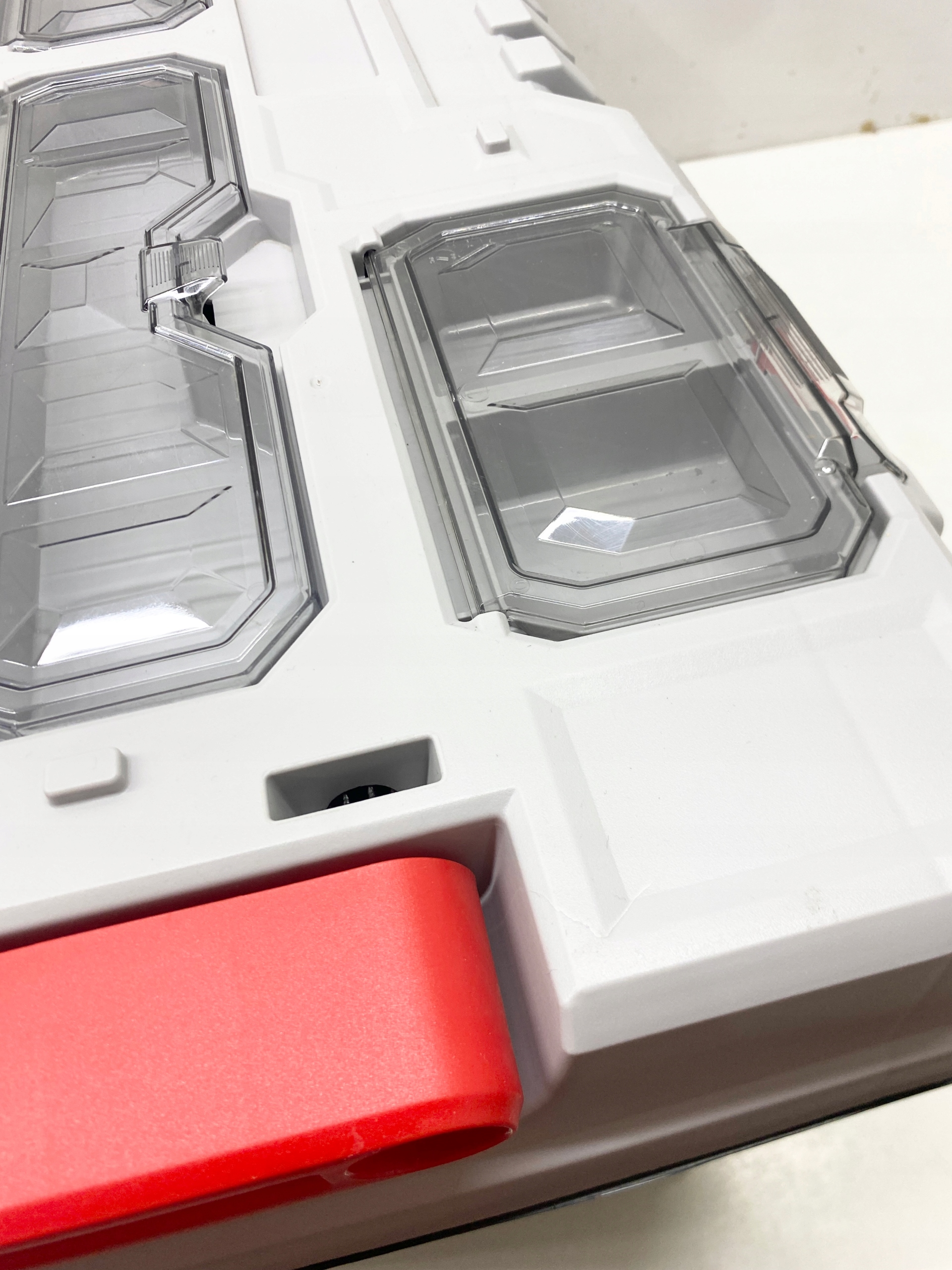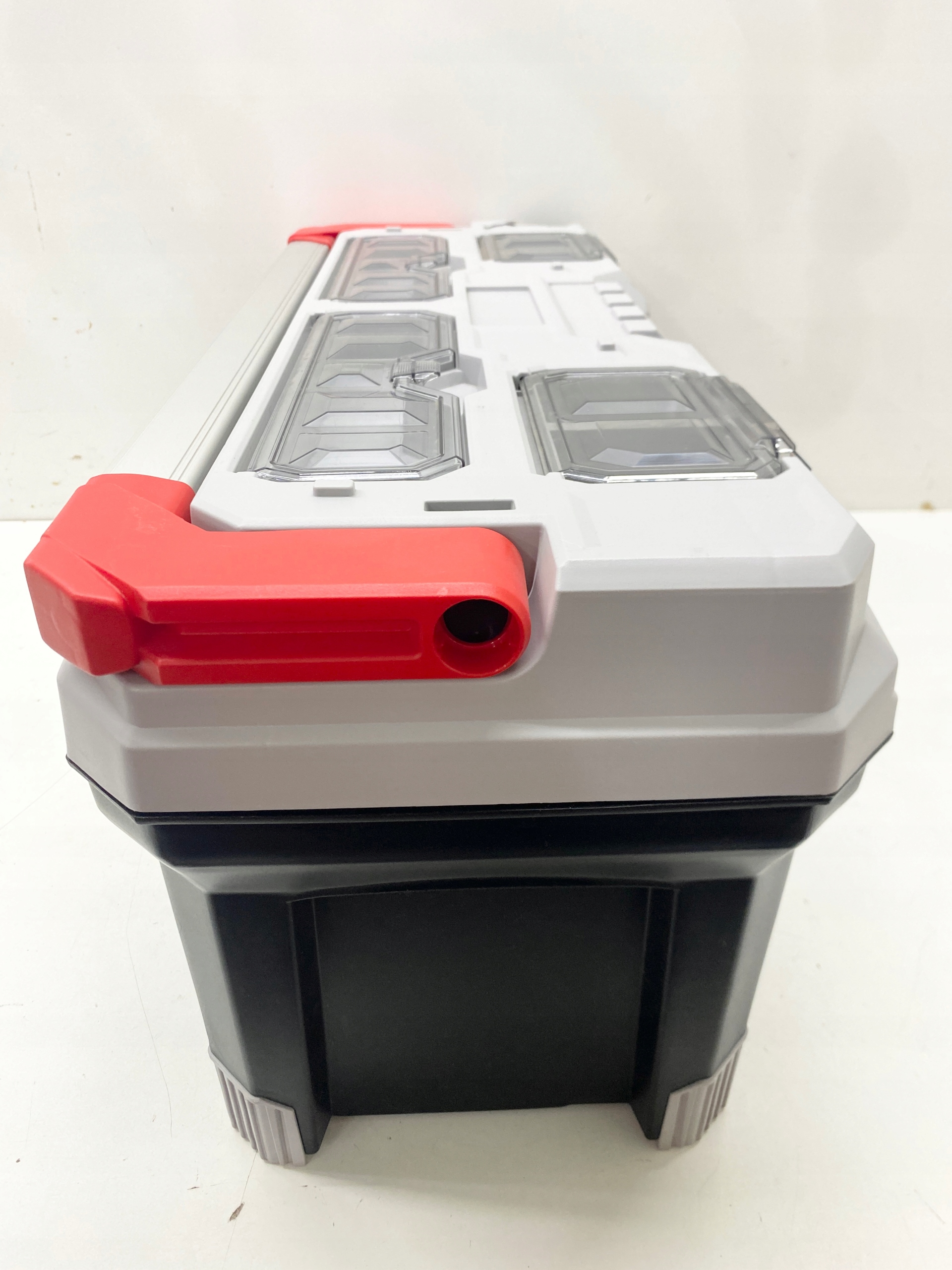 В верхней части бокса расположены четыре отдельных органайзера, закрытых прозрачной крышкой из прочного поликарбоната. Это практичное решение для хранения наконечников, шурупов и дюбелей. Прозрачная крышка позволяет быстро просмотреть содержимое, не открывая коробку. Благодаря этому вы экономите время и избегаете хаоса на рабочем месте даже при выполнении интенсивных задач.