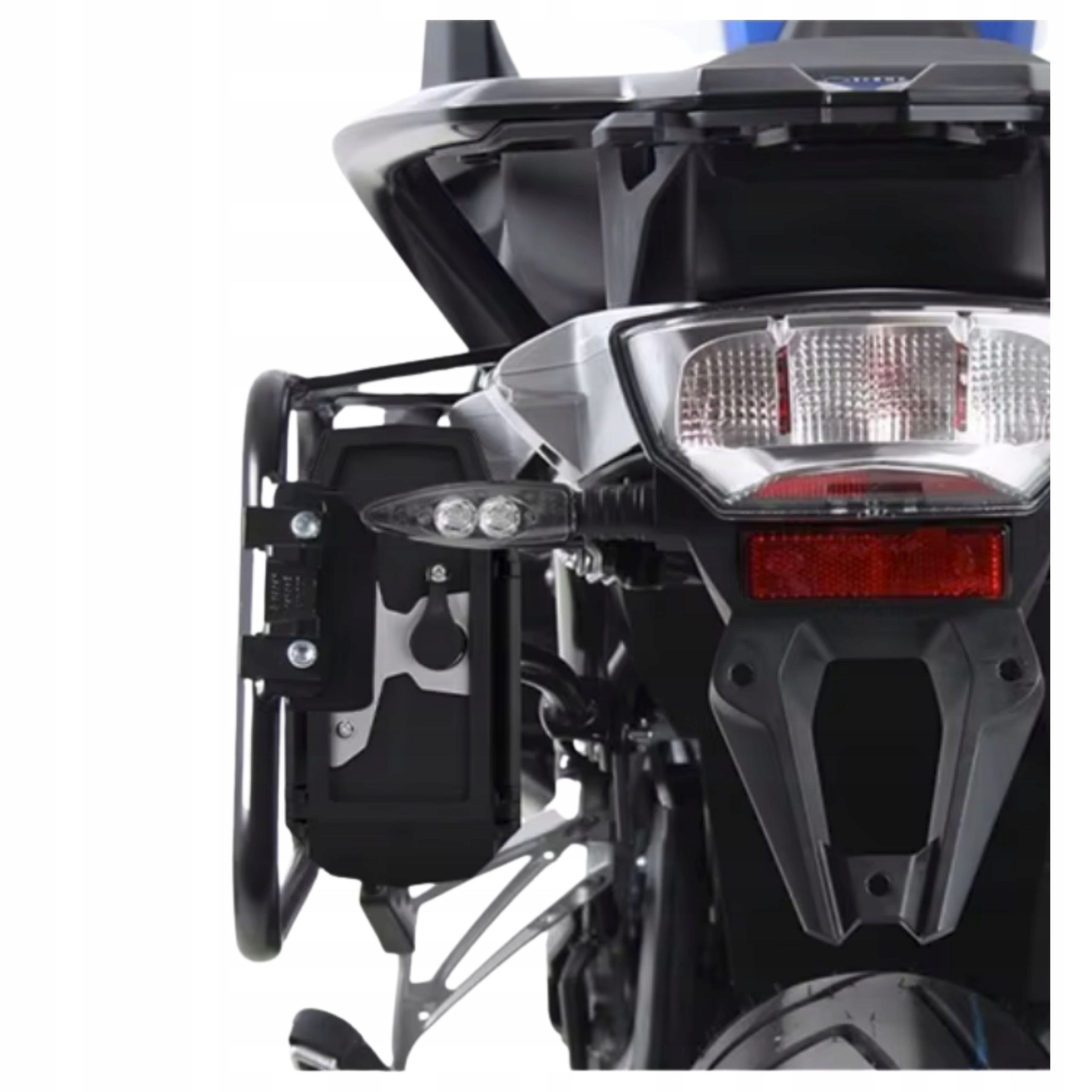 - Может монтироваться на дуги безопасности с правой или левой стороны мотоцикла - в зависимости от модели.