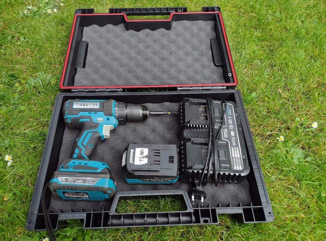 Двойной защитный пенопласт толщиной 1 см (на верхнем и нижнем клапане) обеспечивает защиту электроинструмента от повреждений, а также стабилизацию инструментов внутри ящика и предотвращает неконтролируемое перемещение электроинструмента в ящике.