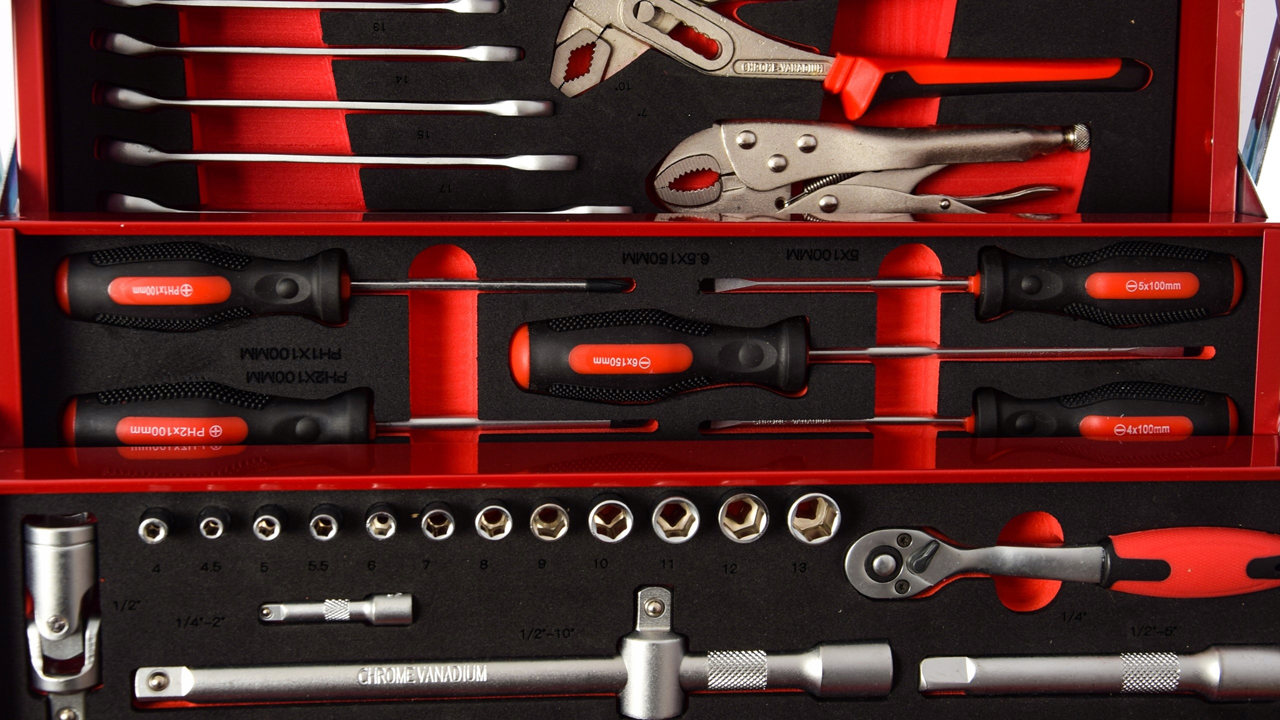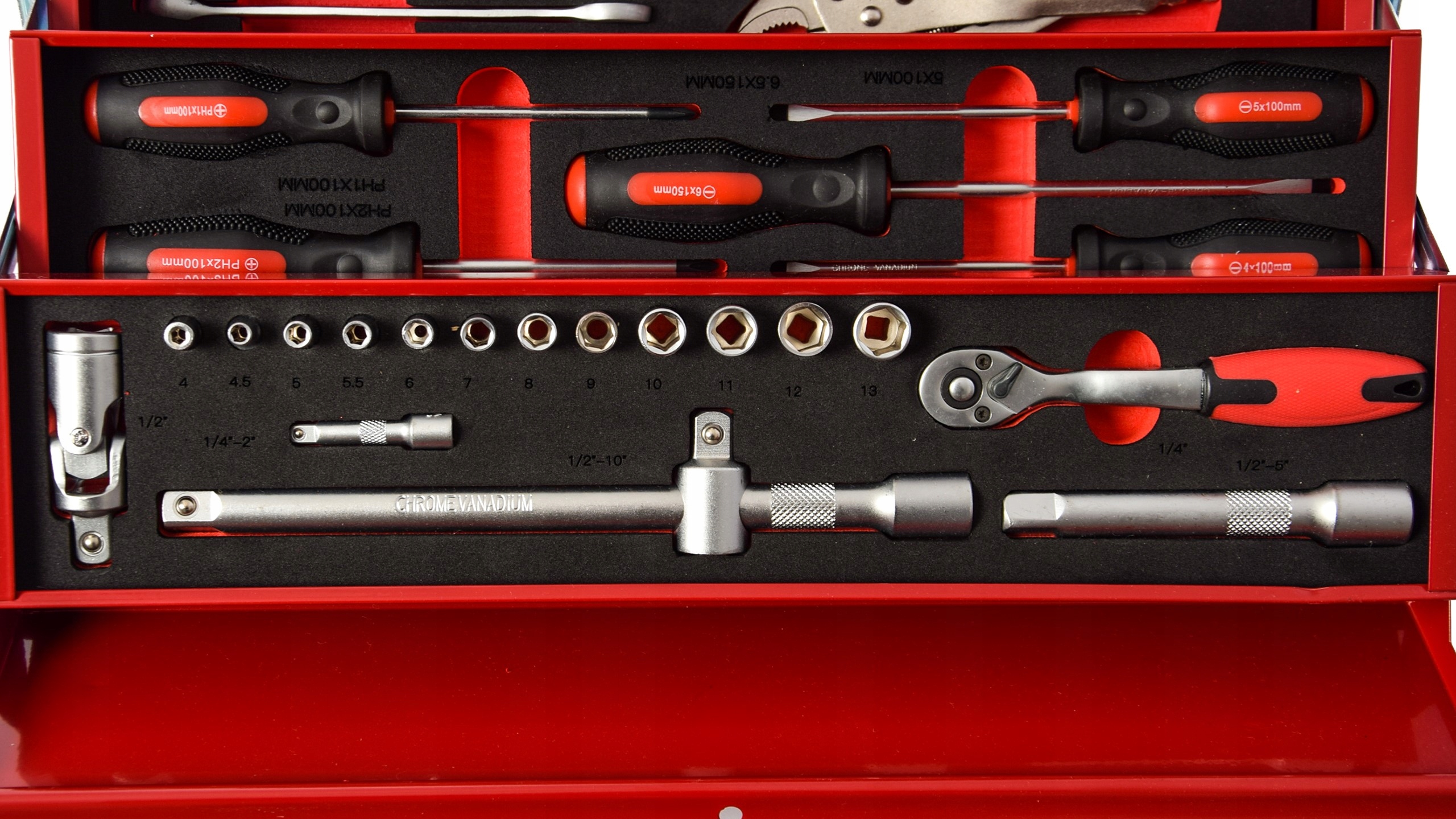 Инструменты изготовлены из высококачественной хромованадиевой инструментальной стали, что делает их очень прочными и долговечными. Набор заключен в прочный чемодан, что делает его идеальным для того, чтобы брать его с собой на монтаж, а также облегчает хранение. Идеально подходит для требовательных любителей DIY, у которых мало места для хранения инструментов. Состав набора подобран так, чтобы удовлетворить самого требовательного покупателя. Это прекрасный подарок для человека, у которого еще нет своей мастерской, ведь там он найдет все необходимые инструменты.