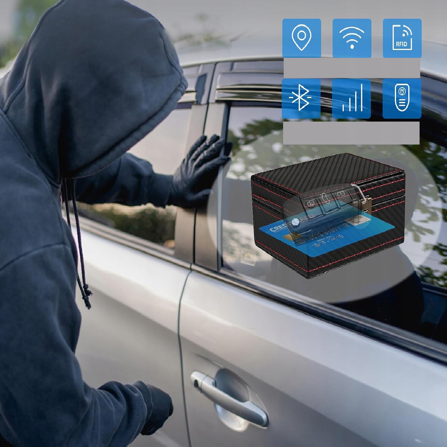 🔐🔐🔐[100% блокировка RFID-сигнала] – Поместите ключи от машины в этот ящик для ключей. Коробка блокирует 100% ключевых сигналов. Это защищает ваши личные и финансовые данные, предотвращая распознавание RFID-сигнала вашей карты. Защищайте свой автомобиль всегда. Путешествуете ли вы или спите, будьте уверены: вам никогда не придется беспокоиться о том, что хакеры украдут ваш сигнал.
