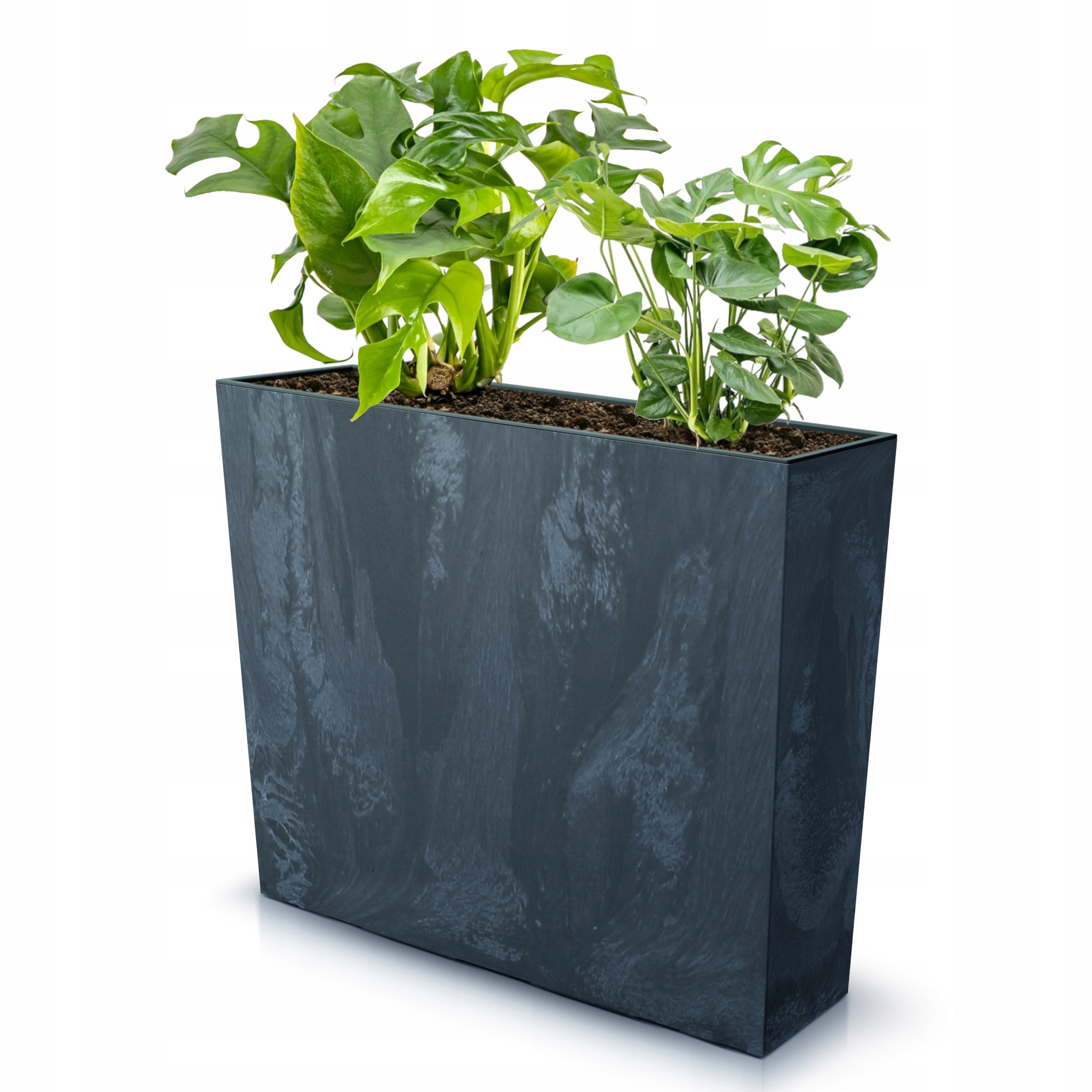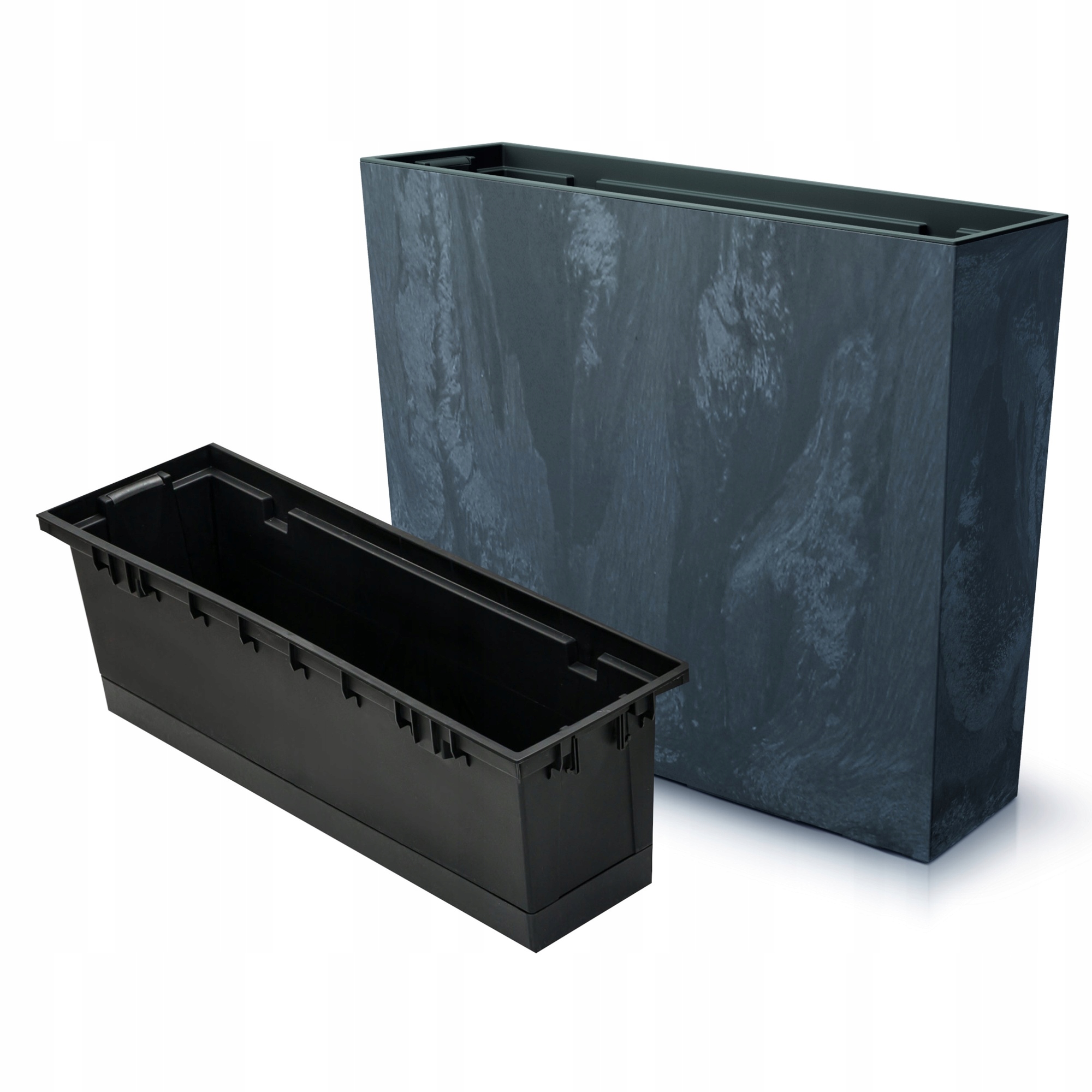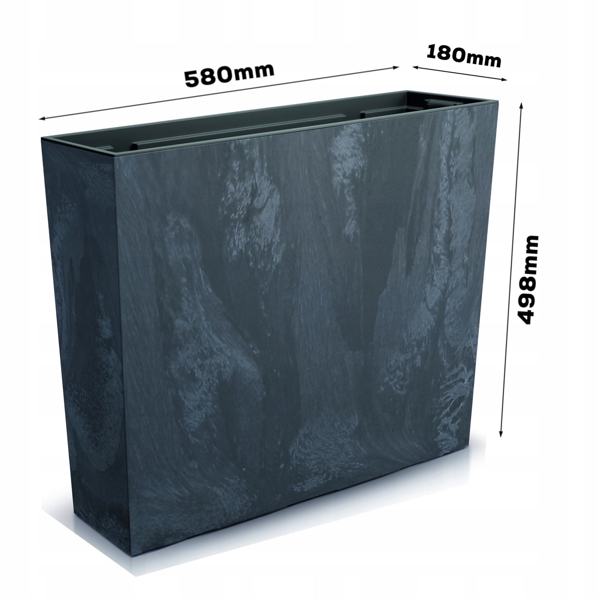 Коробка для цветочного горшка имитация бетона 58х18х50 см. Вставка антрацит