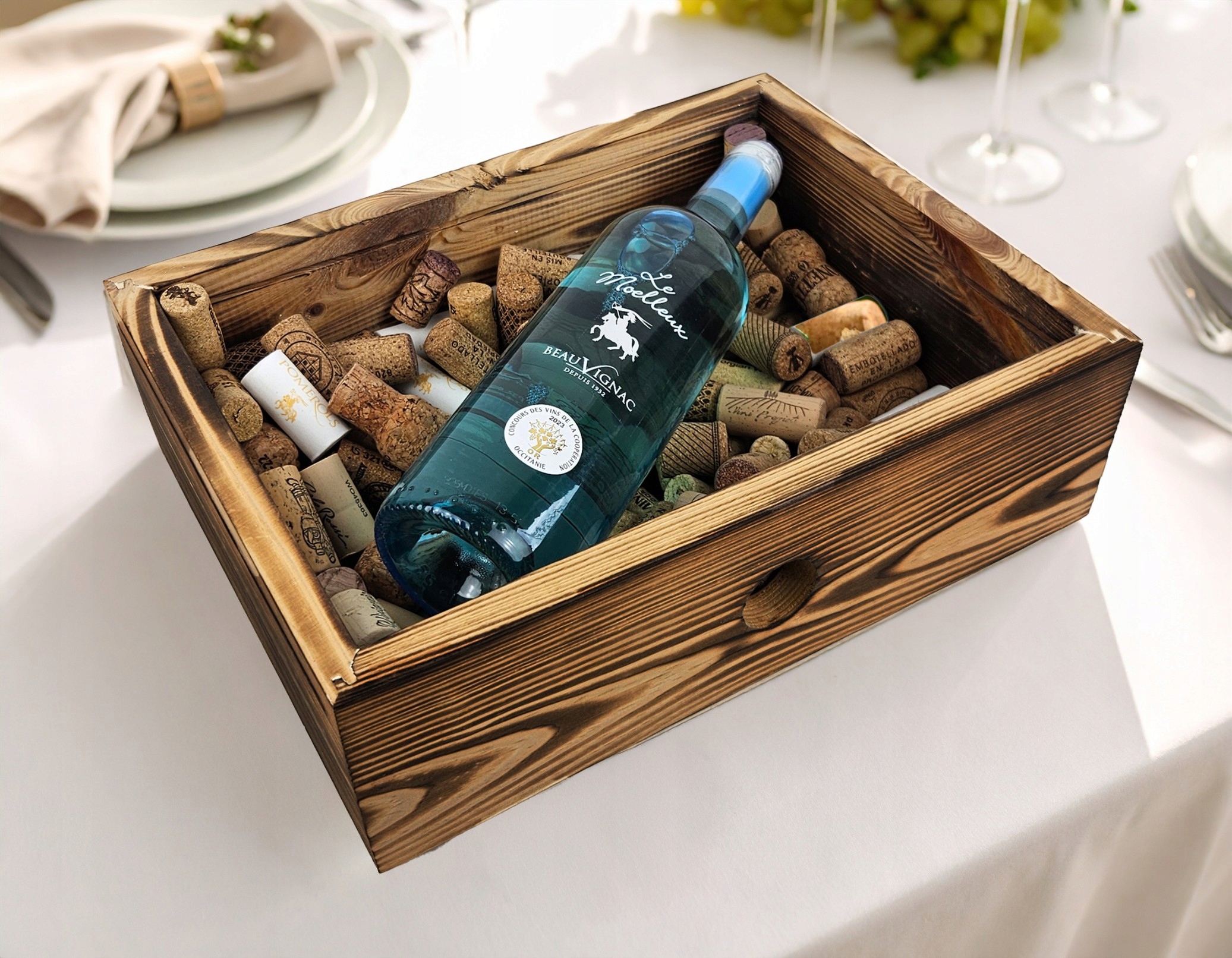 ЯЩИК ДЛЯ ВИНА С ГРАВИРОВКОЙ Деревянный ящик, обожженный пробками